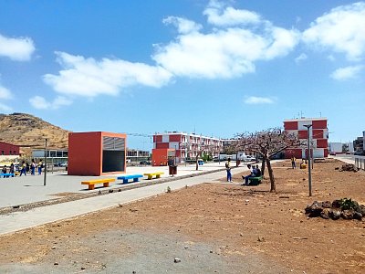 Po probuzení jako vždy nejprve řešíme praktické věci. V Praia jde všechno velmi snadno, protože Ary dokázal najít ve svém náročném programu volný čas a ve všem nám pomáhá. Jede s manželem taxíkem do půjčovny aut, kde předem vyjednal velmi dobrou cenu. Peníze za taxi odmítl přijmout. Nebyl to jediný případ, kdy nám něco zaplatil a nevzal si za to peníze. Pomohl nám sehnat místní SIM kartu. Manželovi v prodejně místního mobilního operátora nejen vložili místní SIM kartu, ale navíc nasadili i nový kryt na mobil. Naše čtvrť vypadá na africké poměry luxusně. Později jsme se ale dozvěděli, že se jedná o sociální byty! Za rohem je malý obchůdek, otevřený denně od 6:30 do 22:00, hned vedle je sympatická „churrasqueira“. Zde je takto označována malá restaurace, ačkoli jinde ve světě (hlavně v Brazílii) je „churrascaria“ restaurace, kde se griluje maso, které neustále poletující číšníci servírují z velkých špízů přímo na talíře sedících strávníků. Na náměstí, kolem kterého se nachází naše čtvrť, jsou sportovní hřiště, kde místní mládež hraje fotbal nebo košíkovou. Na druhé straně náměstí je další malá samoobsluha, pekárna, ještě jedna „churrasqueira“ a cukrárna s prodejem zmrzliny. Vše je otevřené denně od časného rána do pozdního večera jako ostatně všude na ostrově Santiago.