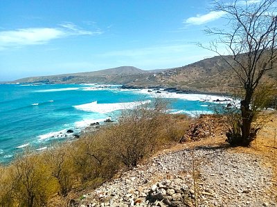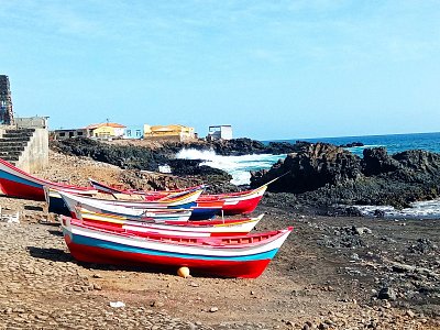 Po obědě jsme se vydali podél západního pobřeží do rybářské vesnice Porto Mosquito. V osadě São João Baptista nás navigace omylem zavedla na horskou dlážděnou cestu do Pico Leão. Daleko jsme však nedojeli. V první zatáčce byla na vozovce hluboká jáma a za ní strmé stoupání, se kterým si naše auto nedokázalo poradit. Naštěstí. Uvědomili jsme si omyl a vrátili se na správnou, daleko lepší silnici. Porto Mosquito se vymyká neafrickému charakteru ostrova Santiago. Všichni obyvatelé mají ebenově černou barvu kůže. Líně polehávají ve stínu nebo hrají karty. Ospalá atmosféra. Afrika.