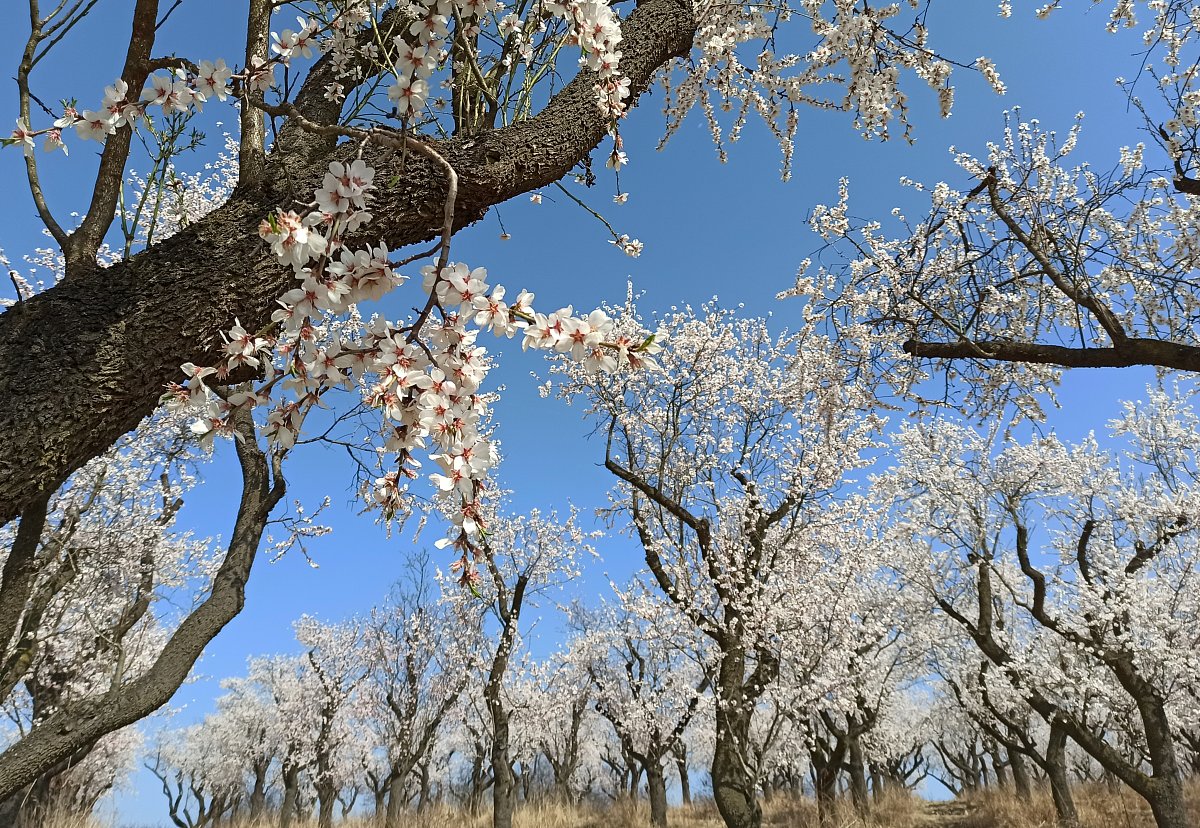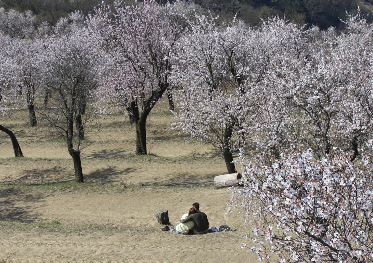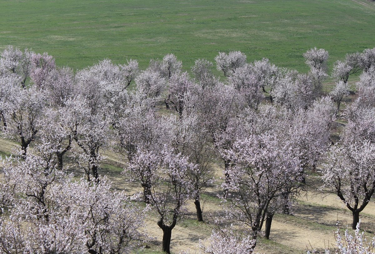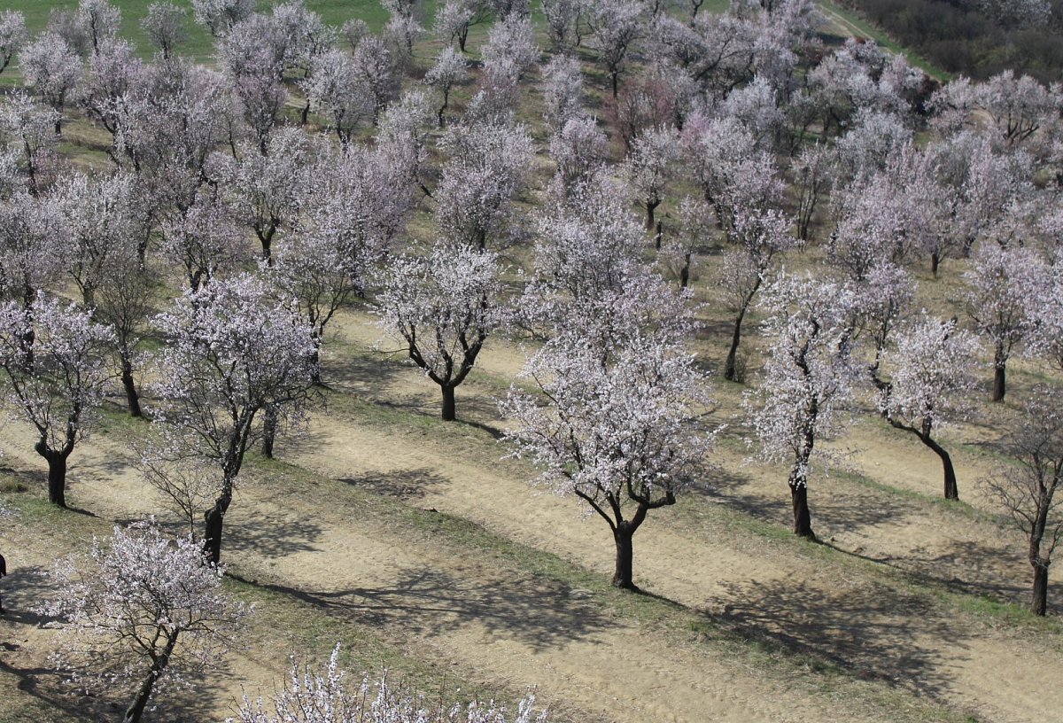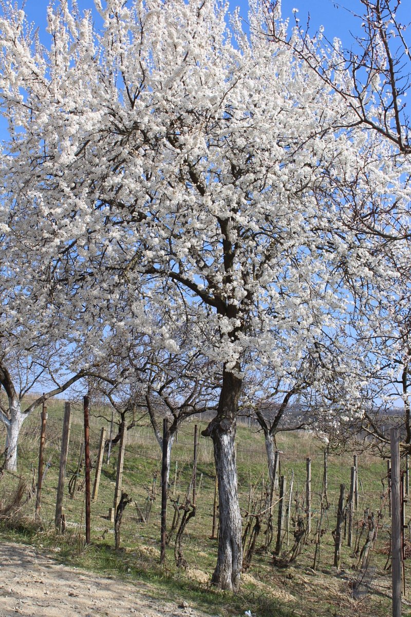 K dopravě jsme využili rychlík Olomouc-Brno, který nás přepravil do stanice Šakvice, a odtud jsme jeli malým osobákem do Hustopečí. Prošli jsme si náměstí s hezkou radnicí, a vydali jsme se na rozhlednu Starý vrch nad městem. Z rozhledny jsme viděli velké plochy nových i starých mandloňových sadů, které jsou unikátem nejen v České replublice, ale i v celé střední Evropě. V době největšího rozmachu v nich rostlo 50 tisíc mandloní.