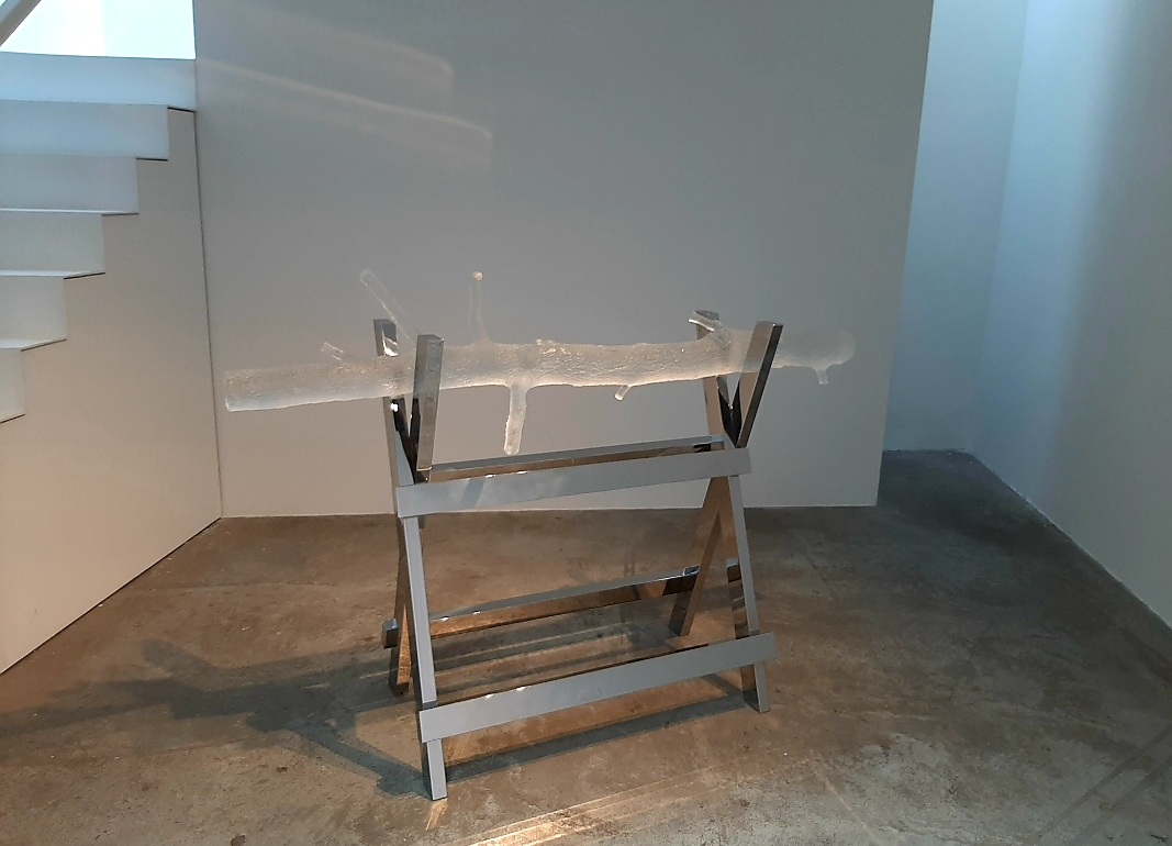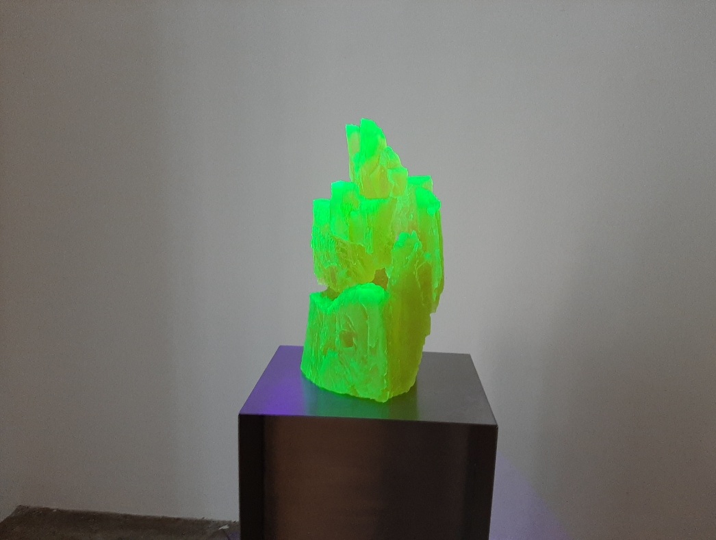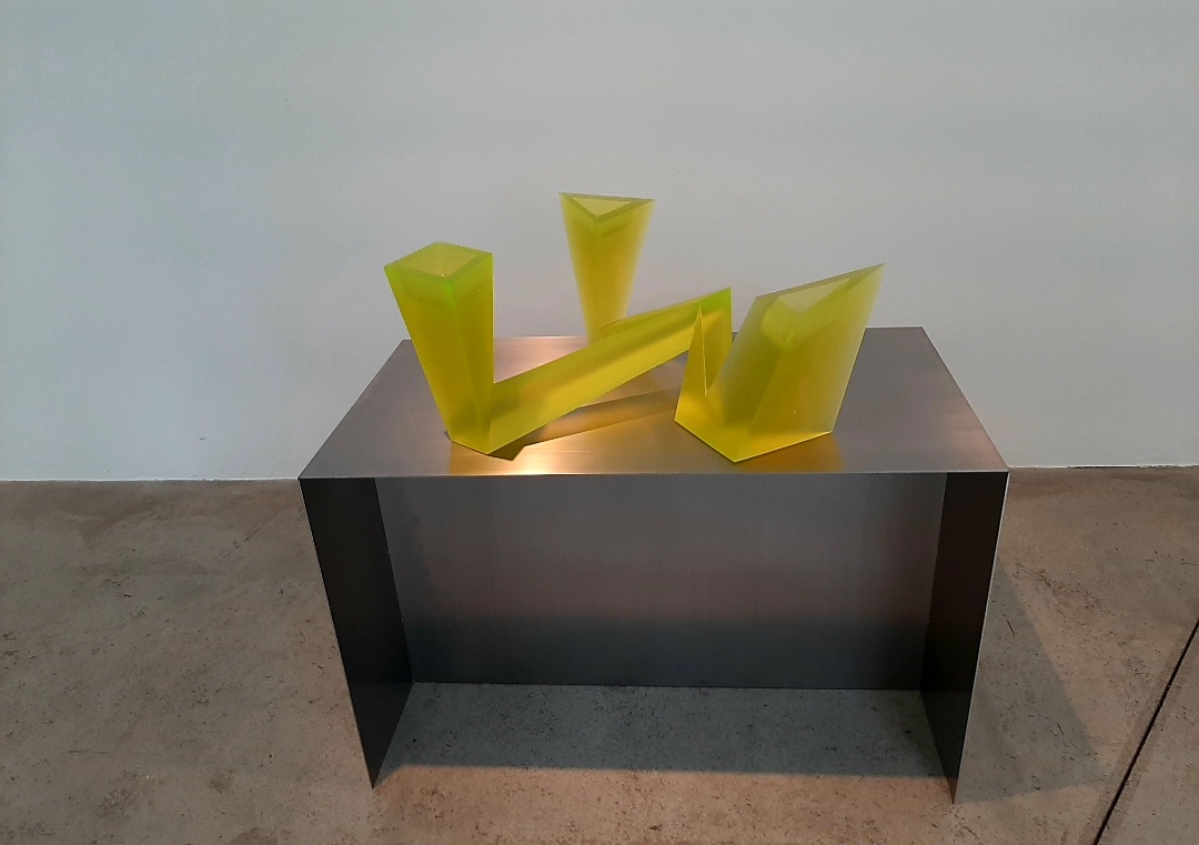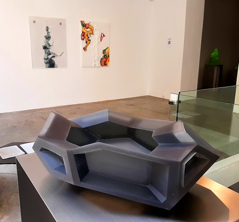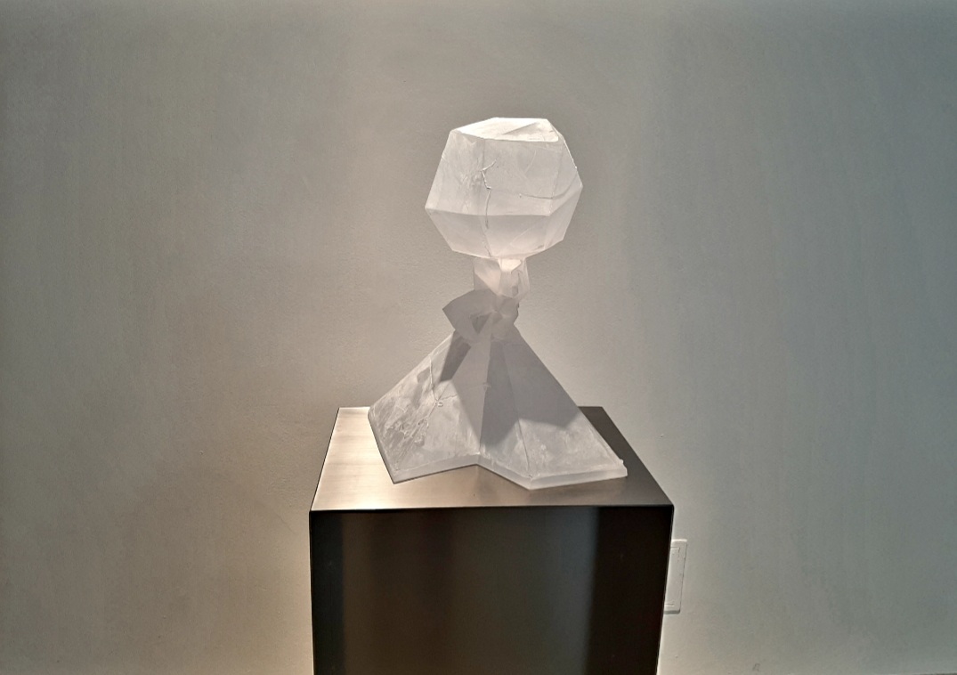 Krištof Kintera na výstavě představil skleněnou variantu sochy, která bude stát pod budoucím Dvoreckým mostem v Praze. Jedná se o postavu, sedící na vrcholu pyramidy, která má místo hlavy obrovský geometrický mnohostěn. Sochu můžeme chápat jako vyjádření břemene, které nese současný umělec, když uvažuje o budoucnosti umění a lidstva.