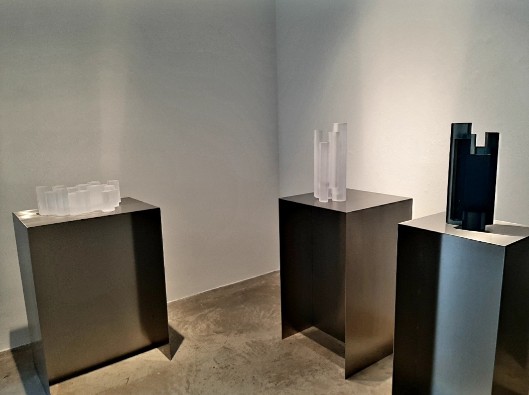 Rony Plesl: Oppidum (165x300x460 mm) vlevo, Manhattan (490x200x180 mm) uprostřed, Manhattan Night (490x200x180 mm) vpravo