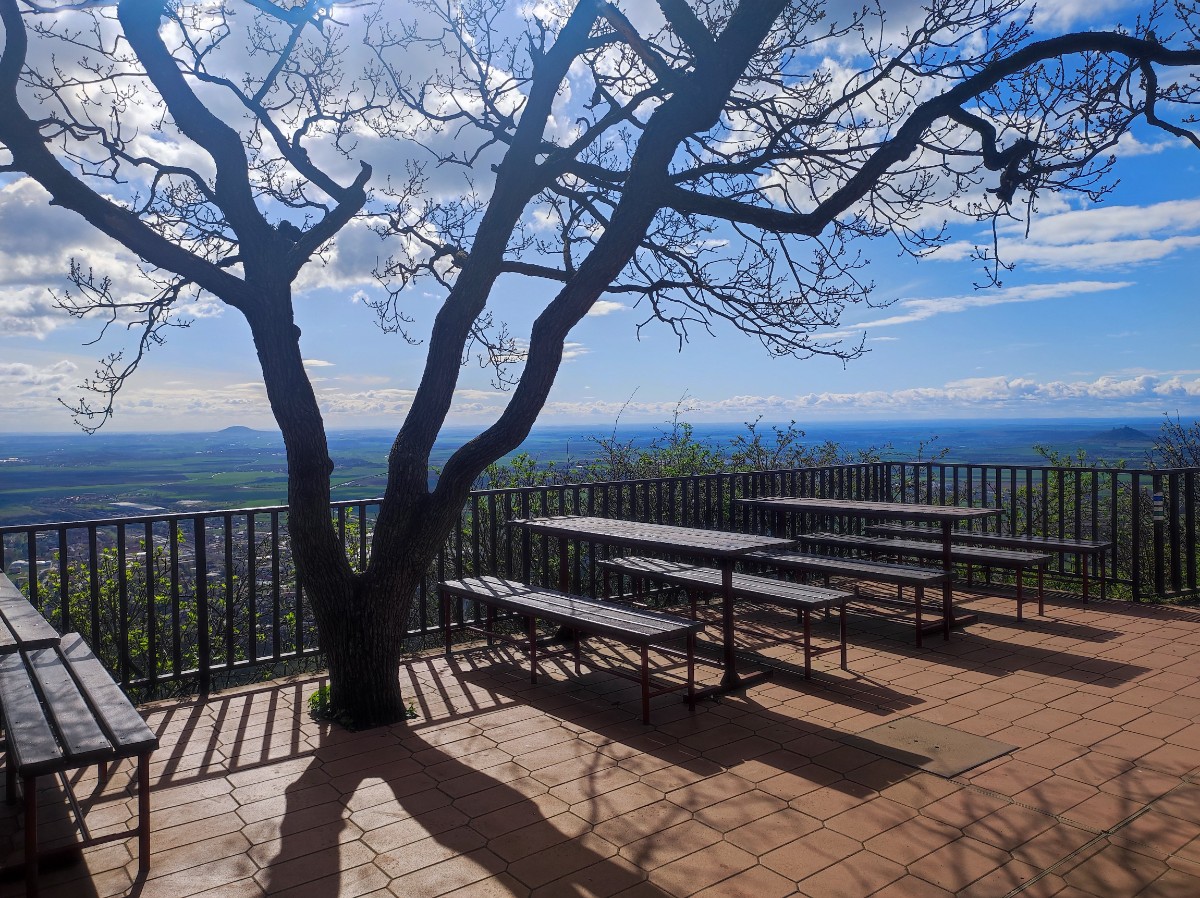 Z vrcholu Lovoše jsem se vydala na jeho menší vrchol zvaný Kybička s Panenskými kameny. Tam jsem poseděla, vytáhla svačinu a hleděla na Lovosice, Žernosecké jezero, Radobýl nad ním a směrem k domovu na Říp, rýsující se na obzoru.