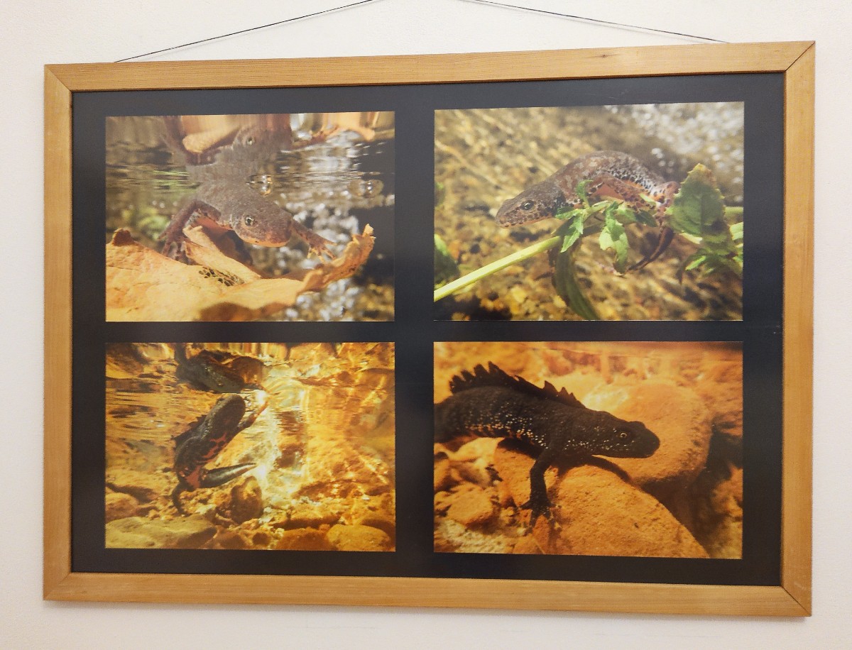 Telefon jsem ani neukládala, protože na začátku prohlídky se pouští veliký mechanický Říp, vyrobený podle dobové pohlednice ze začátku 20. století ze stavebnice merkur. Autor pohlednice měl bujnou fantazii a nastínil jeho představu, jak by Říp mohl v budoucnosti vypadat. Mašinka houkala, vesele objížděla Říp a já jsem stála a točila video. Sama samotinká jsem si pomalu prošla muzeem a dívala se proti proudu času. V Českém středohoří znám Doerrelovu vyhlídku na Labe, kde stojí, že pan Doerrel byl malíř  Českého středohoří. Byla jsem tam naposledy letos v březnu. Teprve teď stojím a na vlastní oči si prohlížím obraz, který namaloval. Zajímavé fotografie obojživelníků Českého středohoří s průvodními texty autorů Jany Doležalové a Romana Vlčka mě nezklamaly. Takového mloka bych někdy chtěla vidět. Nebo aspoň žábu. Čolky jsem v dětství měla za kamarády a nosila jsem si je ve sklenici z potoka Modla domů. Dělala jsem jim na zahradě v záhonech mezi kytkami jezírka. Moc se jim tam asi nelíbilo, protože v noci vždycky utekli a ráno bylo jezírko prázdné.