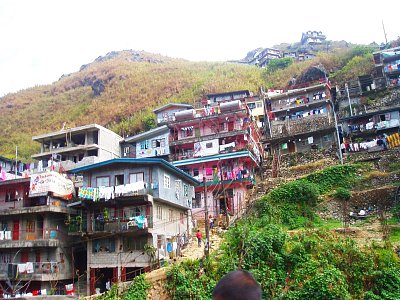 Naše první cesta vede do města Baguio. V Manile jedeme po bulváru Roxas, který má dvanáct jízdních pruhů. Mezi nimi jsou dva zelené středové pásy. Na jedné straně je moře a chodník, na druhé luxusní hotely a banky. Na chodníku na nábřeží leží desítky lidí na kartonových krabicích. Od hotelů a bank je odděluje pouze proud aut. Filipíny jsou bezpochyby zemí propastných kontrastů.