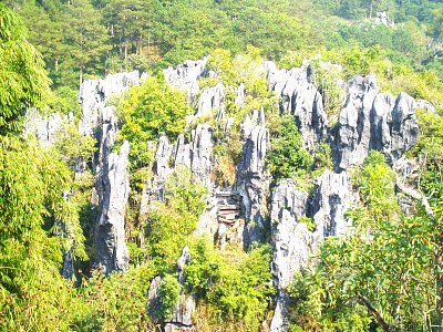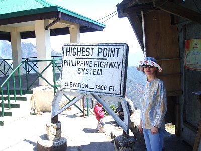 7400 stop je 2255 metrů. V této nadmořské výšce leží nejvyšší místo na silnicích Filipín. Přes tento průsmyk jsme jeli do města Sagada. Cestou jsme míjeli terasovitá rýžová políčka, kterými je ostrov Luzon proslulý. Město Sagada se nachází v nadmořské výšce asi 1 500 metrů, takže je zde chladnější podnebí než jinde na Filipínách. Průměrné roční teploty ve městě se pohybují mezi 17 a 20 stupni Celsia. Tato oblast je známá neobvyklým způsobem pohřbívání. Vysoko na vápencových skalách se nacházejí visuté rakve zvané „sugong“. Místní lidé se domnívají, že podobné zavěšení rakví zesnulých přibližuje jejich duše k nebi. Zavěšené rakve lze vidět přímo ze silnice vedoucí ke vchodu do jeskyně Sumaguing. Nás příliš jeskyně nelákají a prozkoumání této jeskyně by si rovněž vyžadovalo mít lepší fyzickou kondici, takže jsme se spokojili s krátkým sestupem ke vchodu jeskyně Lumiang. Přímo u vchodu do této jeskyně jsou uloženy rakve, které zde leží již 500 let. Jsou naskládané jedna na druhé a splývají s okolní skálou. Těla zemřelých byla uložena v poloze plodu, protože v té době se věřilo, že lidé by měli opustit svět ve stejné poloze, v jaké na něj přišli.