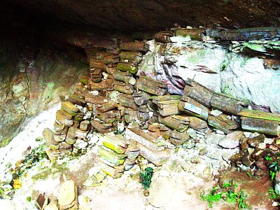 500 let staré rakve u vchodu do jeskyně Lumiang