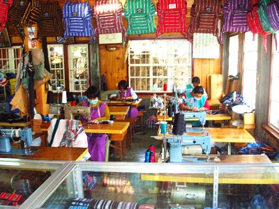 V okolí Sagady se pěstují pomeranče a citrony. Krajina je členitá s mnohými skalními útvary. Nám se v Sagadě líbilo i proto, že jsme tam chodili mlsat do Yoghurt House, kde měli opravdový jogurt. Bydleli jsme v penzionu Mapiya-aw. Byli jsme tam zpočátku sami, což bylo dobře, protože dřevěné podlahy vrzaly tak hlasitě, že jejich lomoz byl slyšet po celém penzionu. Majitelka si toho byla vědoma, a proto nám při příjezdu nových hostů zakázala vyjít z pokoje, abychom se neprořekli a neodradili nově příchozí od pobytu. Noví hosté byli milí Filipínci, takže nám vrzání jejich podlahy ani nevadilo. Horší to bylo s obrovským pavoukem, kterého jsme objevili v našem pokoji. Přivolaná filipínská majitelka se ho ale nelekla a pronásledovala ho tak dlouho, až ho lapila a zlikvidovala. Mám vzdělání z oděvní školy a celý život jsem se věnovala ručním pracím, takže jsem přivítala možnost navštívit místní textilní provozovnu. Šijí se zde trička, která se možná prodávají i u nás.
