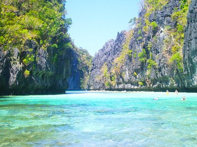 Pět hodin na loďce od Port Bartonu leží v zátoce Bacuit nedaleko od města El Nido chráněná oblast El Nido-Taytay, která je na seznamu přírodního světového dědictví UNESCO. Jsou tam vysoké vápencové útesy, pláže, mangrovové porosty, průzračná tyrkysová voda a jedinečné tropické lesy. Žije zde pět druhů savců, včetně malajského pangolina, a šestnáct druhů ptáků endemických pro Palawan. V zátoce Bacuit žijí také dugongové, delfíni a mořské želvy. Vyskytují se zde rovněž pestrobarevné ryby typické pro korálové útesy. Velké lákadlo, kterému jsem ale nepodlehla. Byl to jeden z mála případů, kdy jsme se s manželem rozdělili. Zůstala jsem „doma“ a kochala jsem se pohledem na klidnou zátoku, pozorovala motýly, četla knížku a odpočívala. Manžel neodolal, chtěl za každou cenu vidět Bacuit, takže se za monotónního vrčení motoru smažil dvakrát pět hodin na malé loďce. Vrátil se šťastný a spálený od slunce, protože se koupal uvnitř jednoho z ostrůvků, kam vedla pouze úzká soutěska. Jeho fotky svědčí o tom, že Bacuit stojí za návštěvu. Naše neteř Eliška začátkem roku 2020 už pohodlně doletěla letadlem až do El Nido, kde je spousta nových resortů. Masová turistika je nezadržitelná.