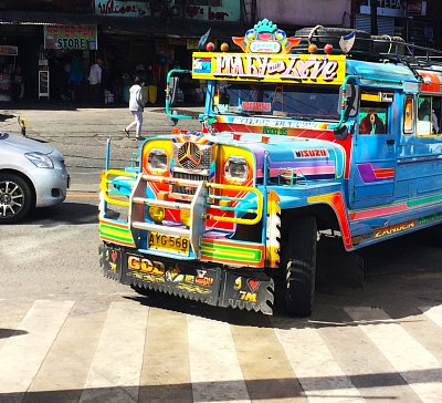 Oslovujeme proto recepci hotelu a zanedlouho před námi stojí Salvador. Pokorný řidič, se kterým absolvujeme cestu z Manily do španělského koloniálního města Vigan. Brzy zjistíme, že jsme se rozhodli správně. Na ulicích Manily panuje změť dopravních prostředků, včetně kýčovitě zdobených a vždy přeplněných autobusů „jeepney“, které se staly symbolem filipínské kultury a umění. „Jeepneys“ se navzájem předhánějí a hlasitě troubí. Lidé do nich nastupují za jízdy a kdekoli zase vyskakují. Hustým provozem se proplétají taxíky na motorkách, rikši i koňské povozy. Chodci se marně pokoušejí chránit se před výpary z výfuků motorových vozidel.