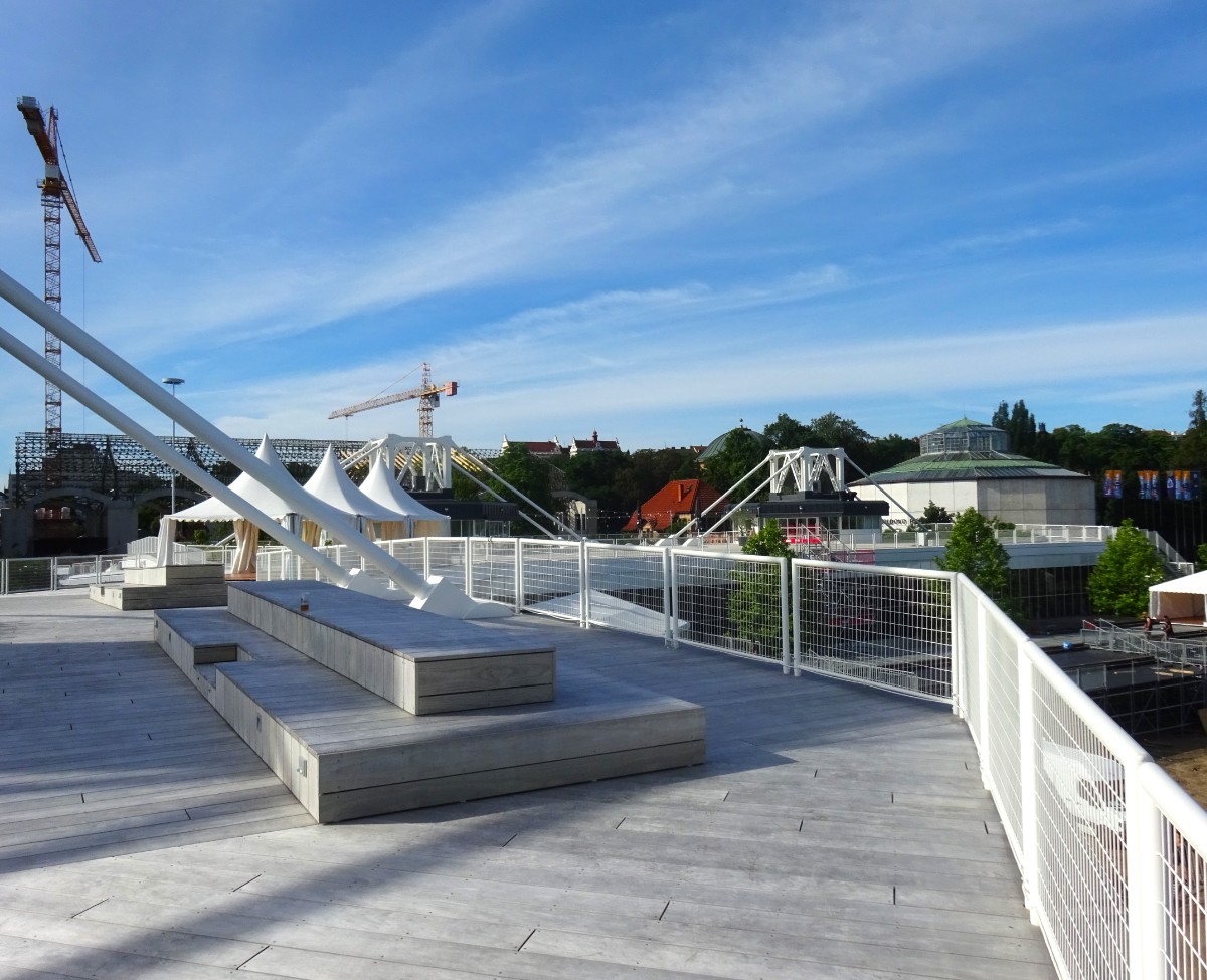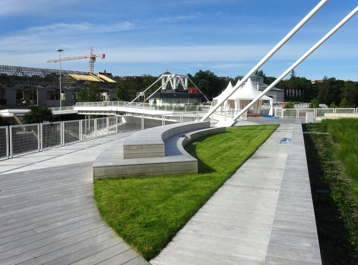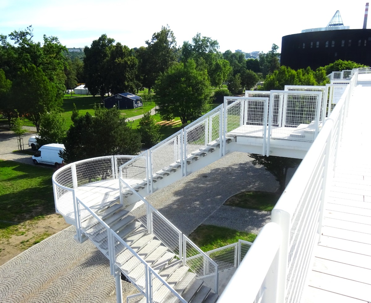 Z fotografií, které jsem viděla na webu, jsem trochu věděla, co mě čeká. Neobvyklá, masivní konstrukce mě zaujala. Líbily se mi neznámé výhledy do okolí. Dojem trochu kazila rekonstrukce Průmyslového paláce; ale je fajn, že práce pokračují.