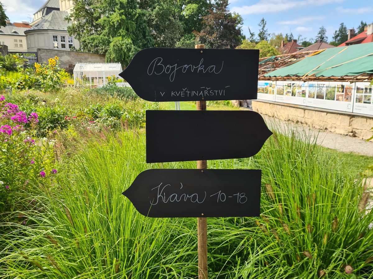 Před vstupem do zahrady Info pro soutěžící i odpočívající