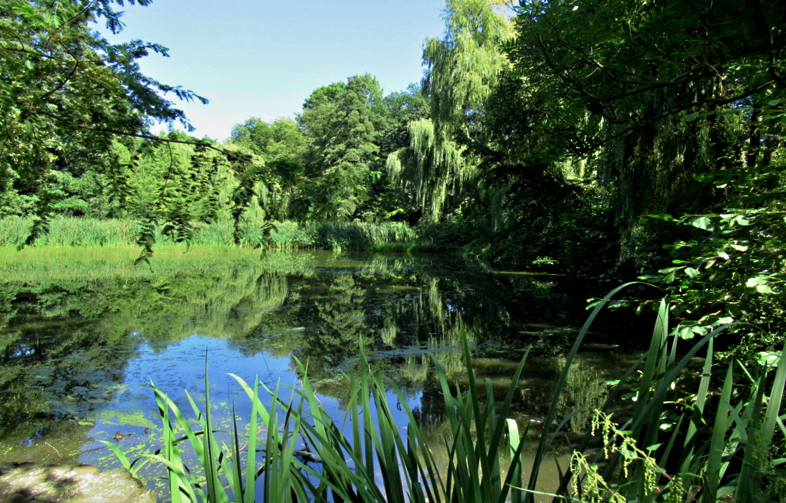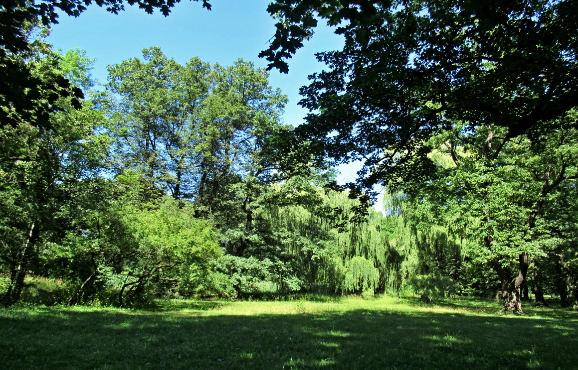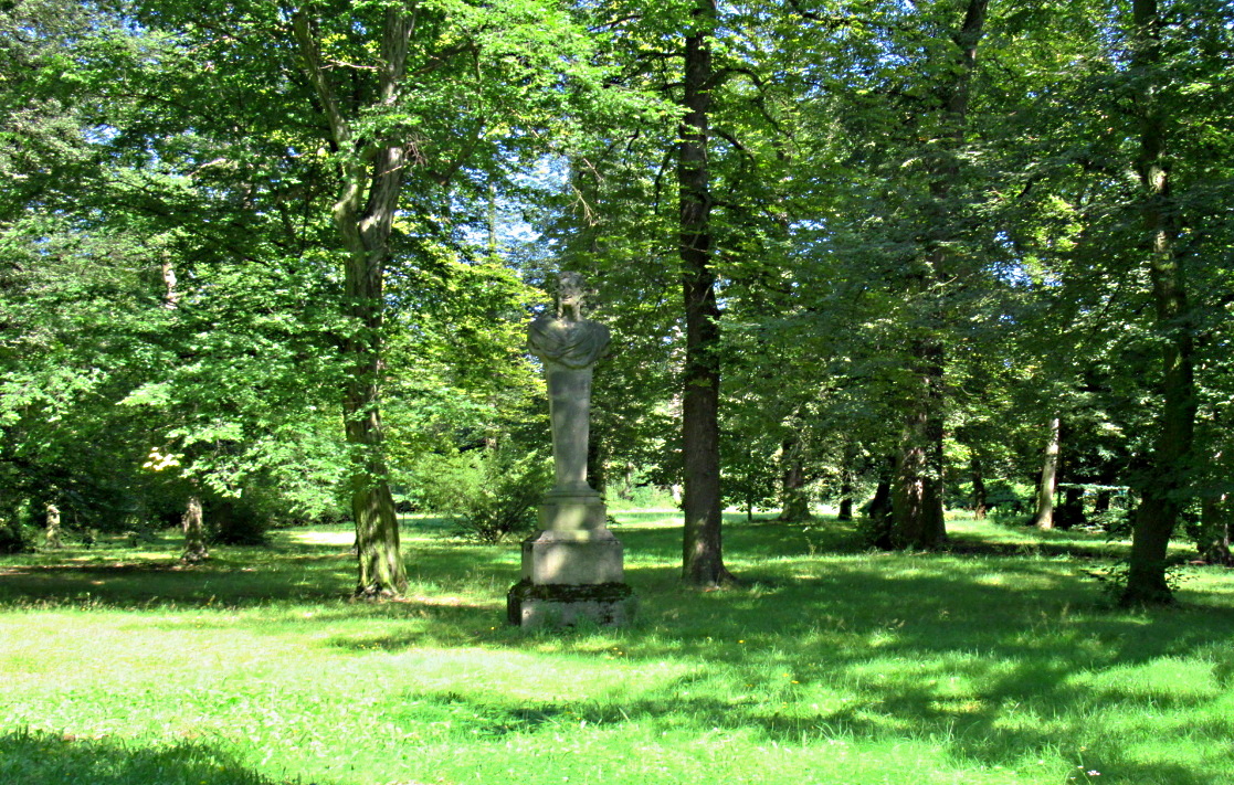 Měla jsem radost, že se park stal na chvíli jen můj. Běhala jsem od místa k místu, rybníky nezklamaly, byla jsem u vytržení z obrovských stromů, vypadaly jako staleté, vyfotila jsem i pár soch. Málokdy se naskytne, že je na chvíli v podstatě všechno vaše. Zámek se mi podařilo vyfotit i zepředu, malé zahrady k němu patří.