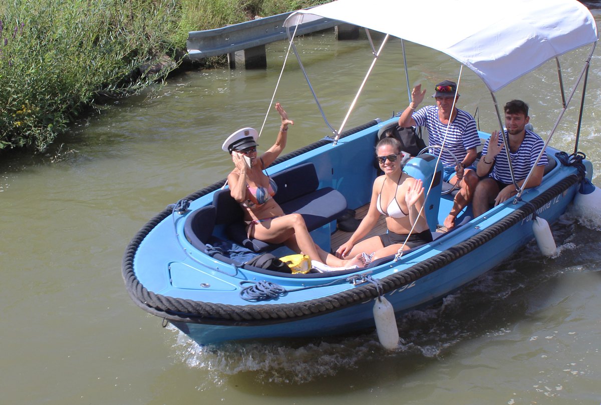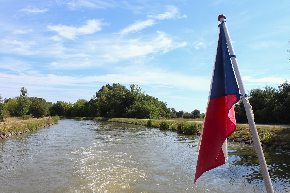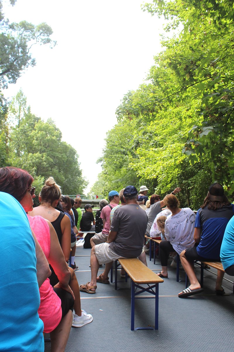 Přesně v deset jsme vypluli k jihu naším milým Slováckem, osázeným vinohradem. Milá paní průvodkyně nás seznámila s historií i současností Baťova kanálu. Potom otevřela malý bar s občerstvením, a my jsme si tak mohli plavbu zpříjemnit vychlazeným Radegastem, i když jsme se těšili na víno. To v nabídce ale nebylo.
