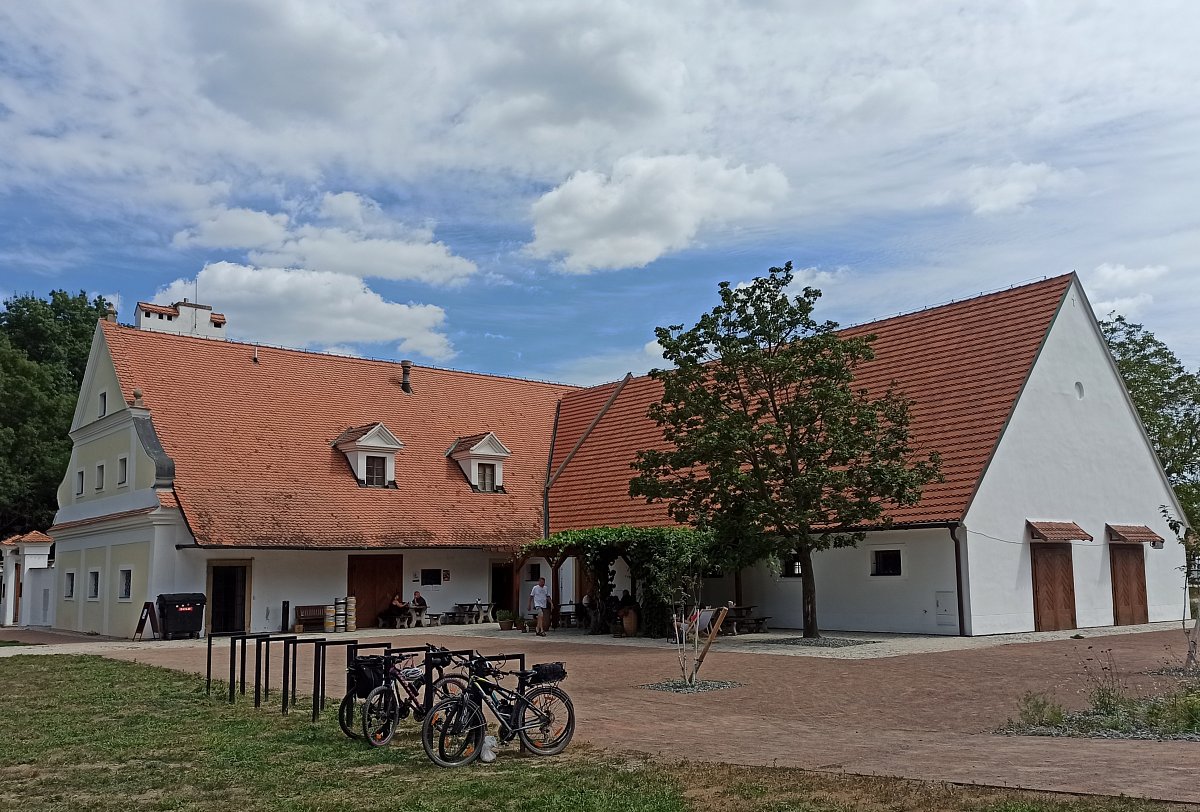 V přístavu bylo docela živo. Někteří se šli posilnit do okolních restaurací, jiní na prohlídku Slováckého muzea v přírodě. My jsme zamířili na náměstí do vyhlášené cukrárny. Město bylo liduprázdné, ani v cukrárně nás moc nebylo. Obešli jsme oba kostely - kostel Nanebevzetí Panny Marie a kostel sv. Martina, a obhlédli vysokou strážnickou věž, která je dominantou města. Je vysoká 34 m a byla postavena v roce 1615. Při cestě na nádraží jsme našli IC a otevřenou vinotéku, kde měli dobré moravské bílé vínko. Večer jsme si při něm rekapitulovali krásně prožité chvíle uprostřed hezké moravské přírody.