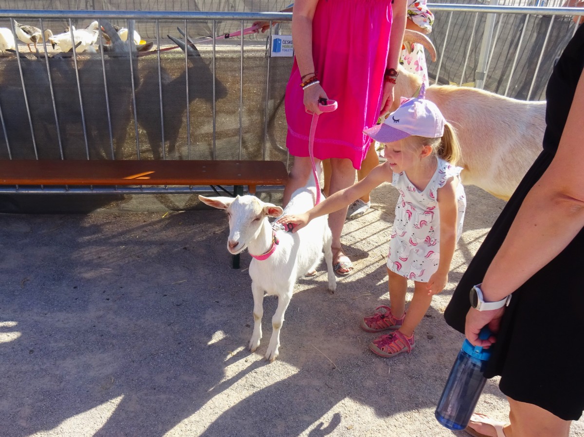 Děti si se zaujetím prohlížely ovečky, kozy a kůzlata, krávy, koně, králíky, slepice, kuřátka, husy, housata, kachny, káčata. Měly možnost si některá pohladit.