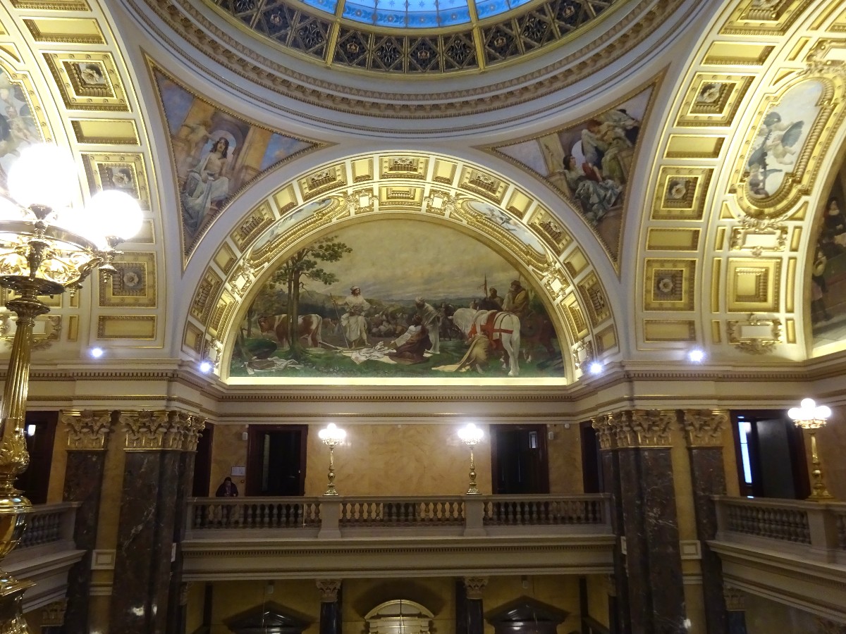 Obdivovala jsem výzdobu, malby, pohledy z ochozu, kupoli, stropy i podlahy. Na schodech mě zaujala poodhalená slečna, focená pravděpodobně profesionální fotografkou.