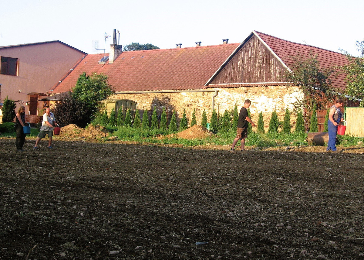 Rozcvičujeme se s lopatami, vysypáváme kačírek a zeminu, drancujeme místní zahradnictví, aby holou pláň pokryly barevné obrazce dřevin, poskytujících potravu i úkryt mnohým živočichům.