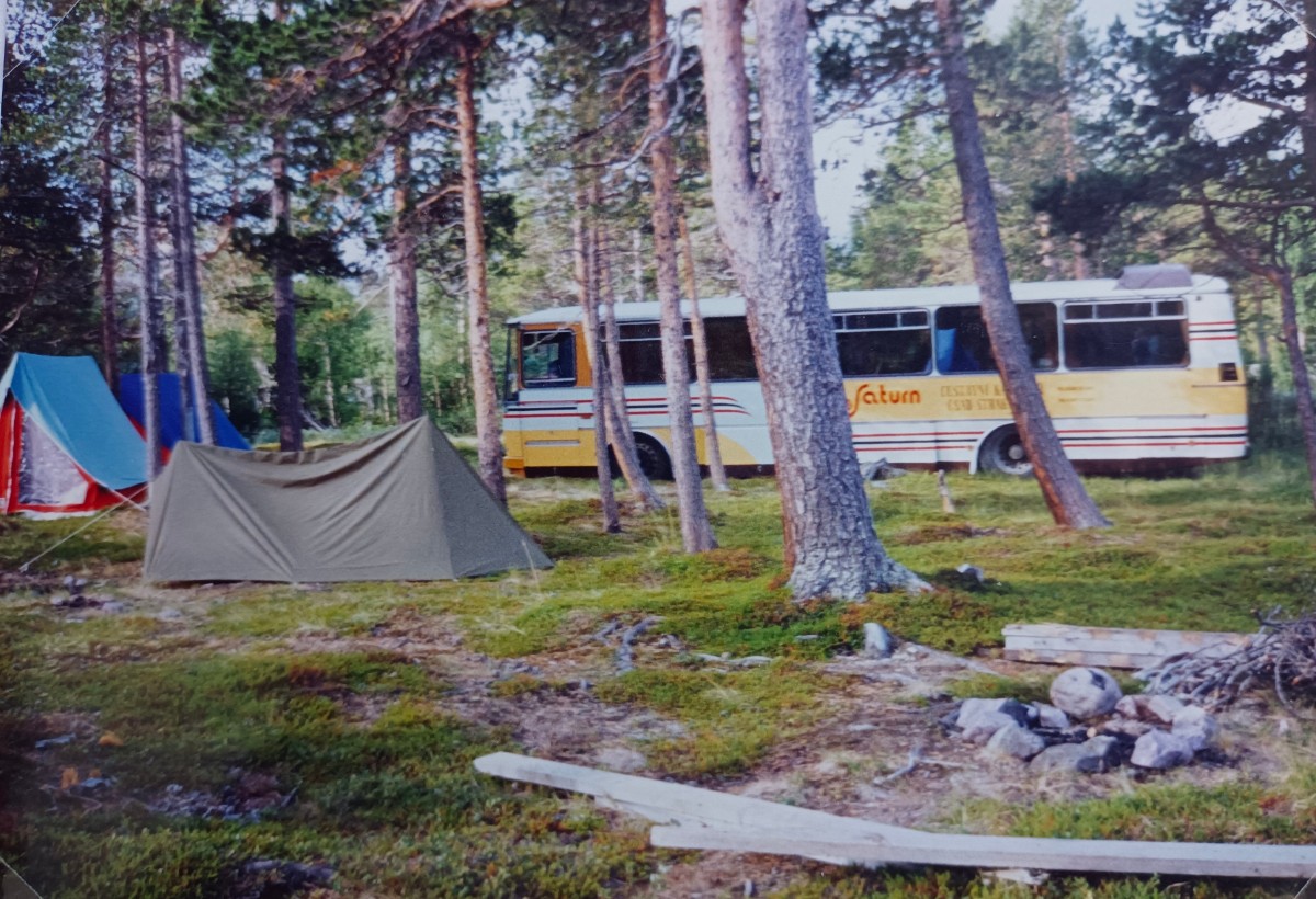 Přes Švédsko, Finsko do Norska. Cestou nás provází rozkvetlé vrbovky, dominanta Skandinávie. Zastavujeme v některých městech a vesnicích až za polárním kruhem. Obdivujeme kostelíky a míříme sále na sever. Nocujeme ve Finsku u jezera v borovicovém lese. Spousta hub a komárů. Ty si opravdu užíváme. Ráno tůra v NP Pallastuntury, v nevysokém pohoří s divokou a krásnou přírodou. Připomíná nám Šumavu s rašeliništi, ale spoustou nádherných jezer. Příroda je zde smutná, zádumčivá, ale líbezná.