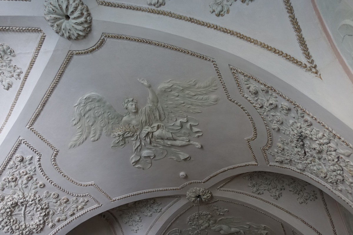 V období, kdy sídlila na zámku ČS armáda, byly štuky odstraněny a uloženy ve sklepení. Nezachovaly se všechny, ale bylo na čem „stavět“. Zázrak!