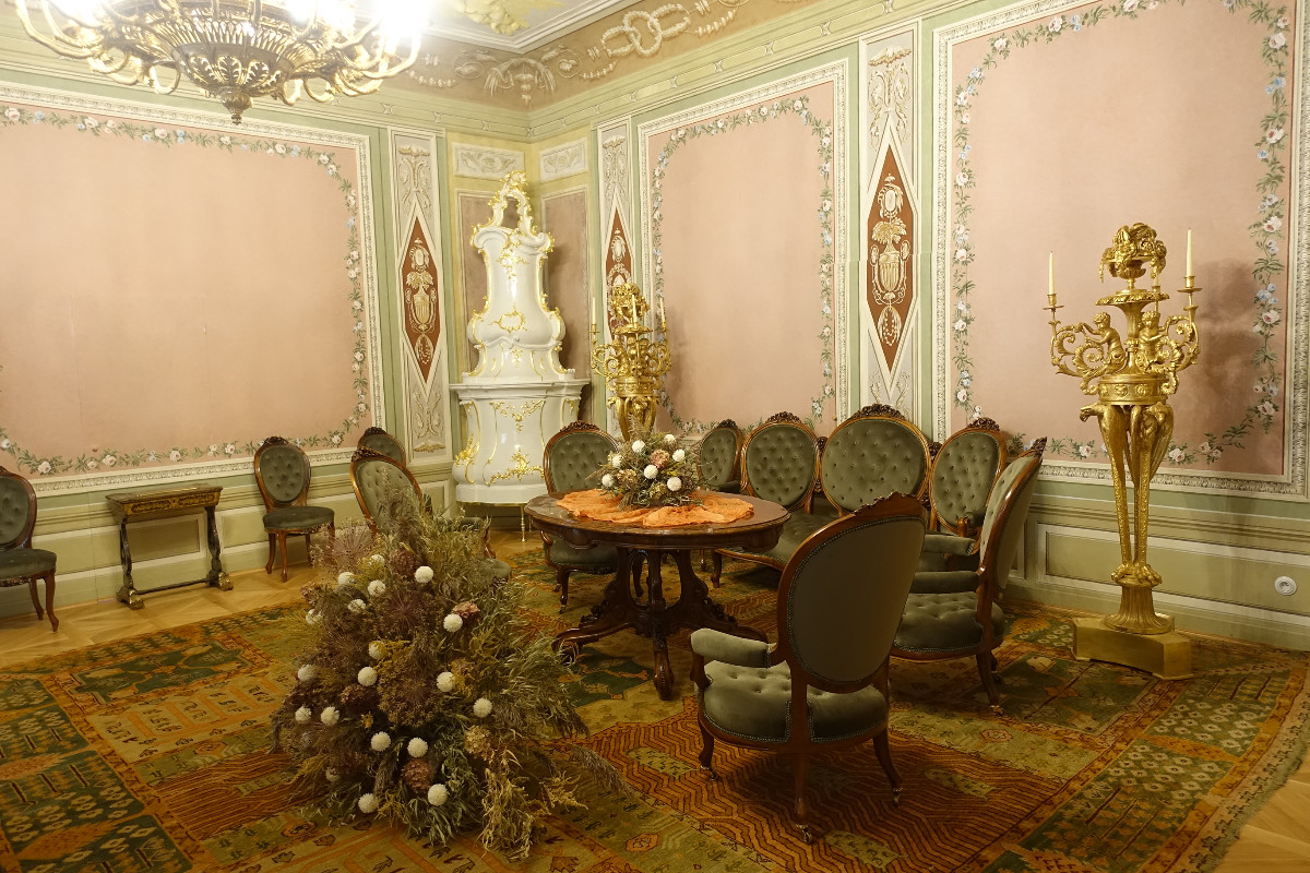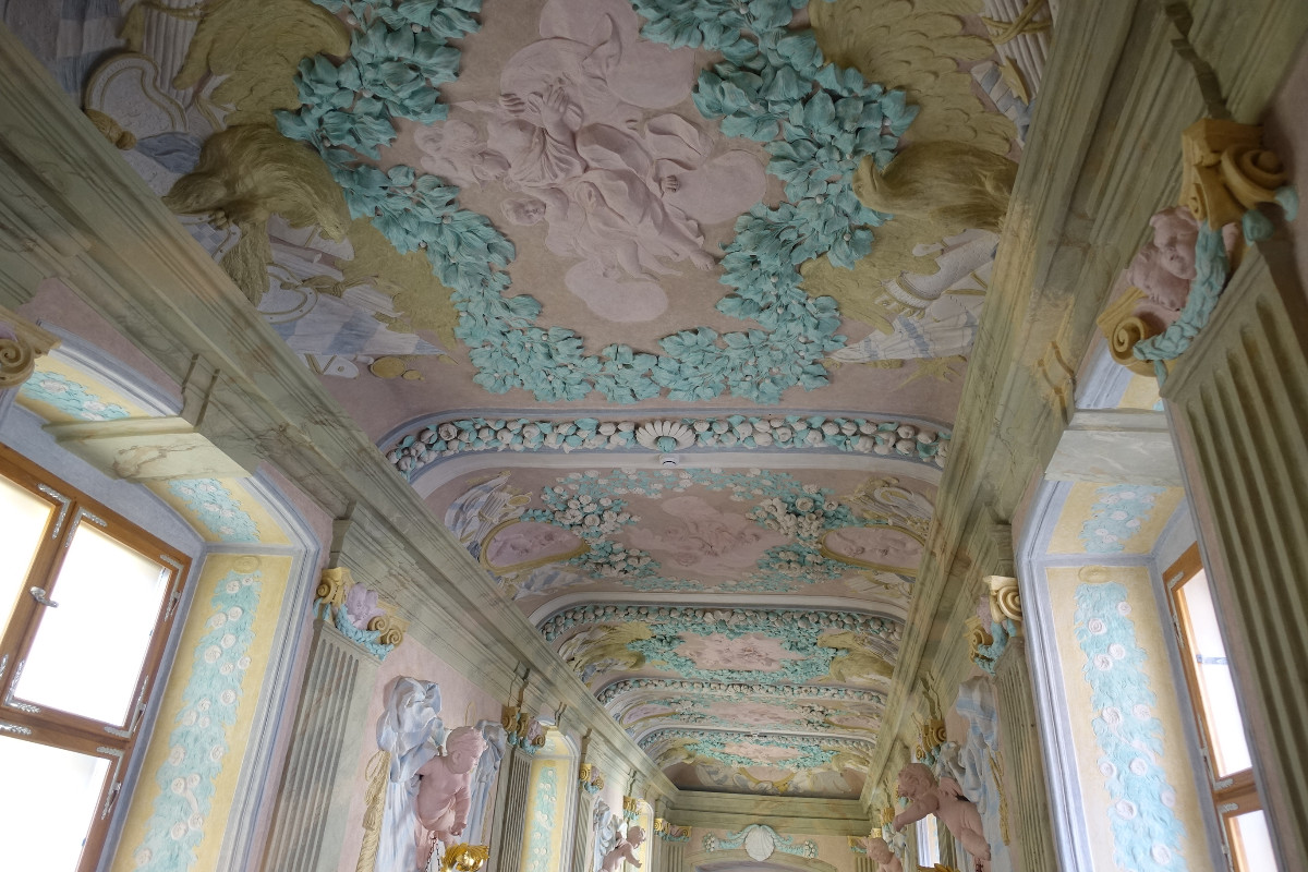Rok se s rokem sešel a 28. října jsme dorazili podruhé. Opět jsme procházeli renesančním okruhem ale již doplněným o barokní interiéry s bohatými štukami. Připadala jsem si v nich jako v cukrové vatě. Všude převládala růžová a světle zelená.