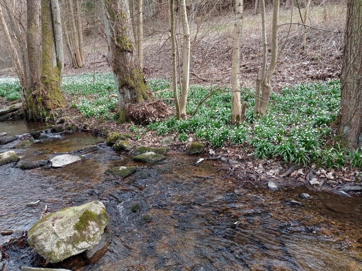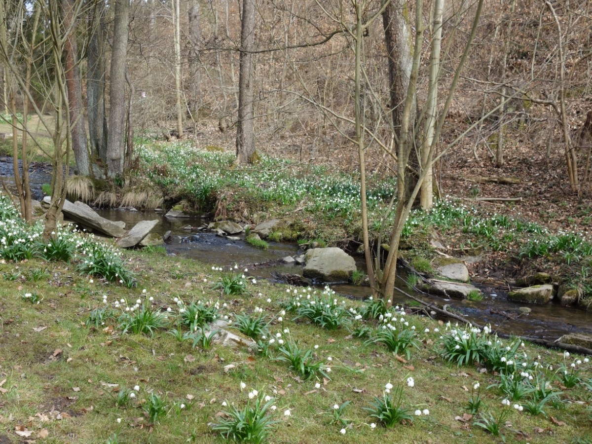 Můj druhý výlet byl do přírodní rezervace Údolí Chlébského potoka, nedaleko Nedvědice, asi 40 km od Brna. Břehy tohoto potoka lemují tisíce a tisíce bledulí jarních, tvořící krásné sněhobílé koberce. Jestliže konikleců se odhaduje na 60 tisíc trsů, bledulí tu uvidíte mnohonásobně více. Úplný bledulí ráj.