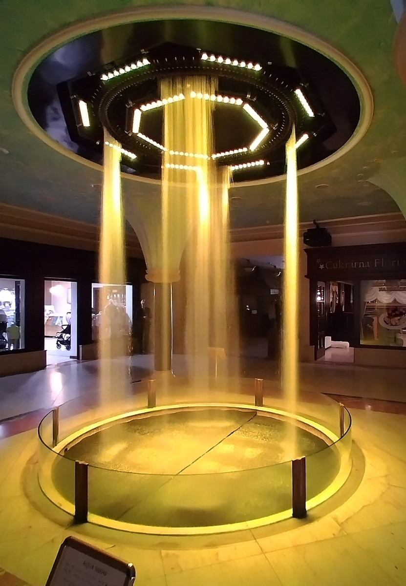Každou celou hodinu, od pondělí do pátku od 9 do 18 hodin, o víkendu od 10 do 17 hodin, čeká návštěvníky naprosto nevšední podívaná kombinace světelných efektů, videoprojekce a obrazců, tvořených kapkami padající vody, ve spojení s působivou hudbou různých žánrů.