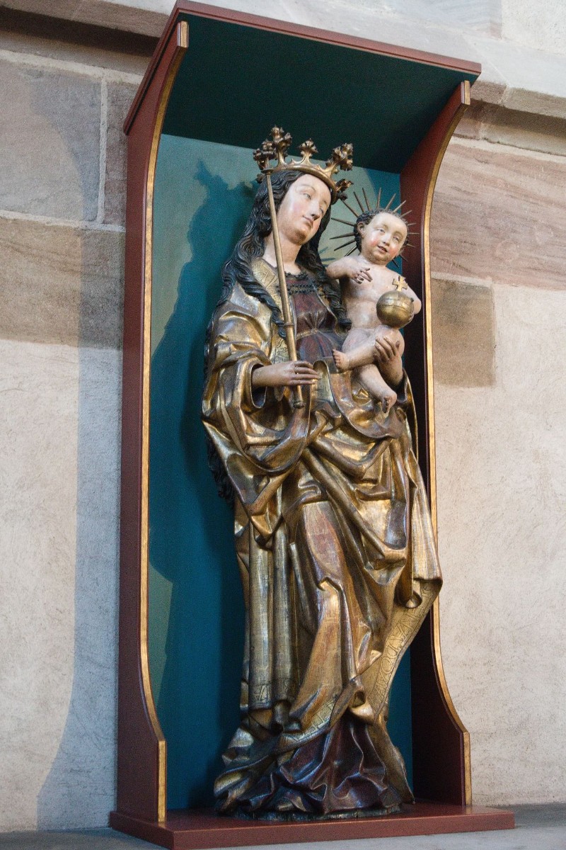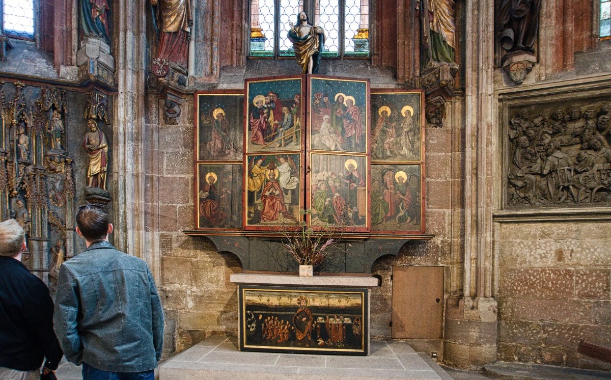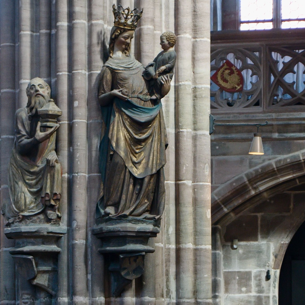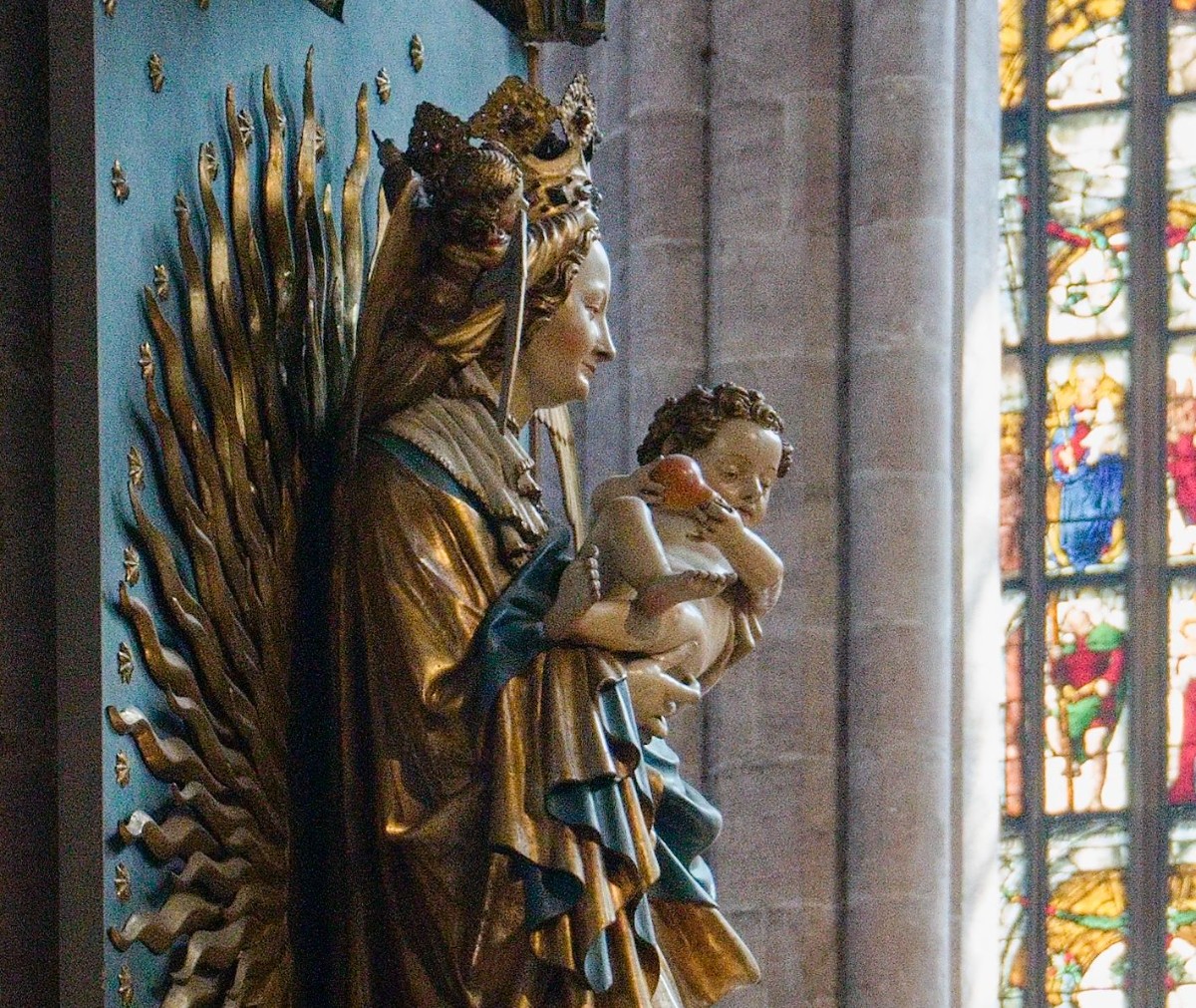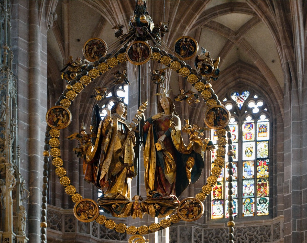 V interiéru kostela jsme si prohlédli mnoho cenných uměleckých děl. Fascinující je tzv. Andělský pozdrav vznášející se v prostoru. Výjev Zvěstování Panně Marii v kruhu zlatých růží vyřezal z lipového dřeva Veit Stoss, významný představitel středoevropského pozdně gotického sochařství.
