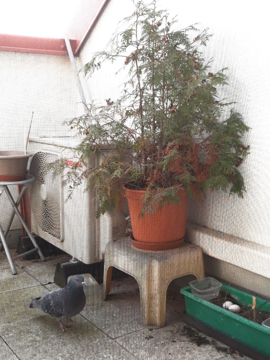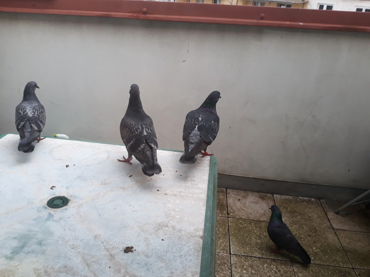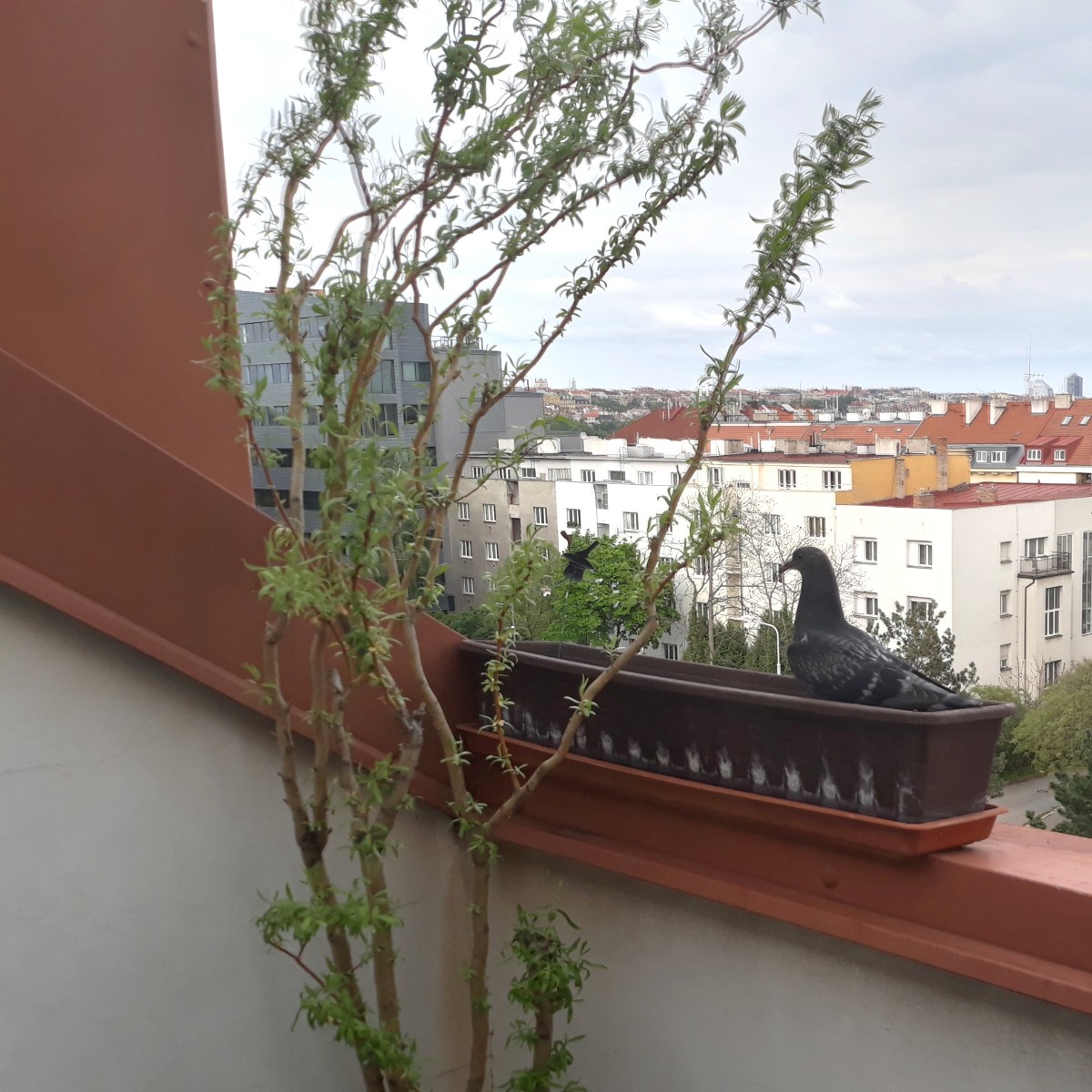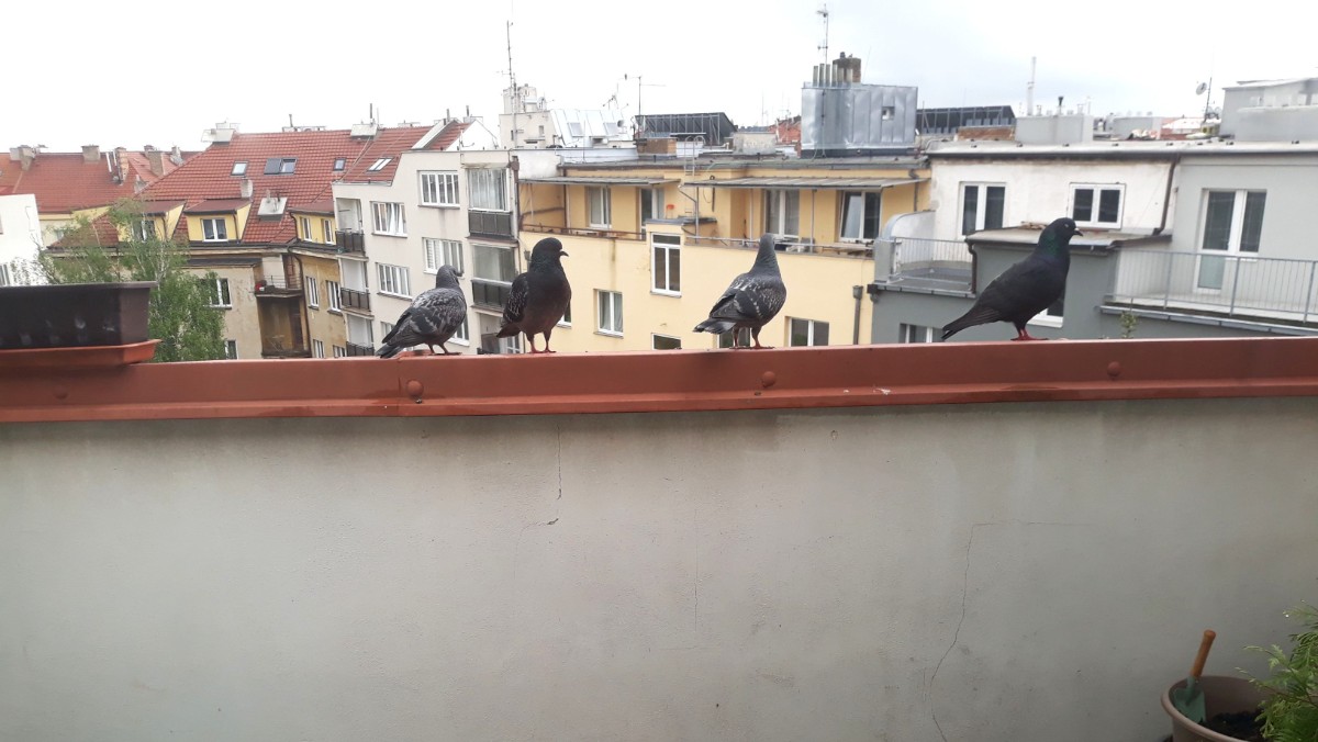 Následující den po odletu holubí rodinky a před nadcházejícími velikonocemi jsem se pustil do důkladného úklidu nepořádku po holubech na terase a po přezimování na ni vynesl truhlíky a květináče s rostlinami, abych ji přeměnil na minizahrádku a relaxační prostor tak jako každý rok. Holubi i holoubata měli ještě pár dnů tendenci se na terasu vracet, resp. na ni alespoň ze střechy koukat, ale moje důsledné vyhánění a jiný vjem změněné terasy je zjevně definitivně od podobných pokusů odradilo. A tak skončil měsíční příběh sledování vývoje holoubat od vylíhnutí až po jejich odlet. Vše proběhlo opravdu tak, jak bylo popsáno v prvním odkazu za článkem.