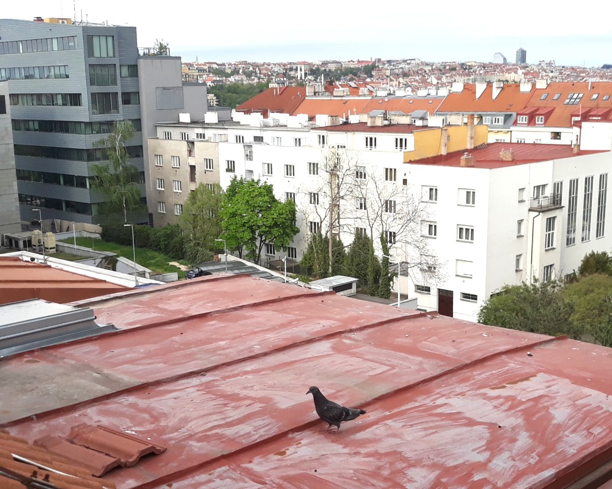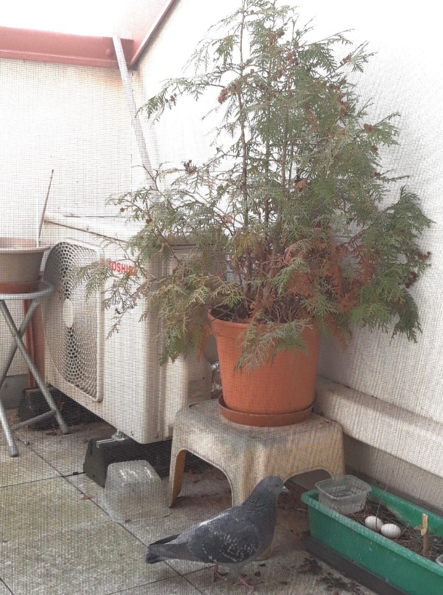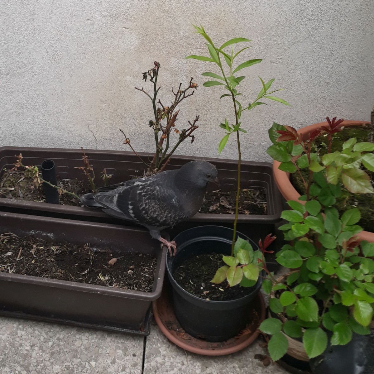 Následující den po odletu holubí rodinky a před nadcházejícími velikonocemi jsem se pustil do důkladného úklidu nepořádku po holubech na terase a po přezimování na ni vynesl truhlíky a květináče s rostlinami, abych ji přeměnil na minizahrádku a relaxační prostor tak jako každý rok. Holubi i holoubata měli ještě pár dnů tendenci se na terasu vracet, resp. na ni alespoň ze střechy koukat, ale moje důsledné vyhánění a jiný vjem změněné terasy je zjevně definitivně od podobných pokusů odradilo. A tak skončil měsíční příběh sledování vývoje holoubat od vylíhnutí až po jejich odlet. Vše proběhlo opravdu tak, jak bylo popsáno v prvním odkazu za článkem.