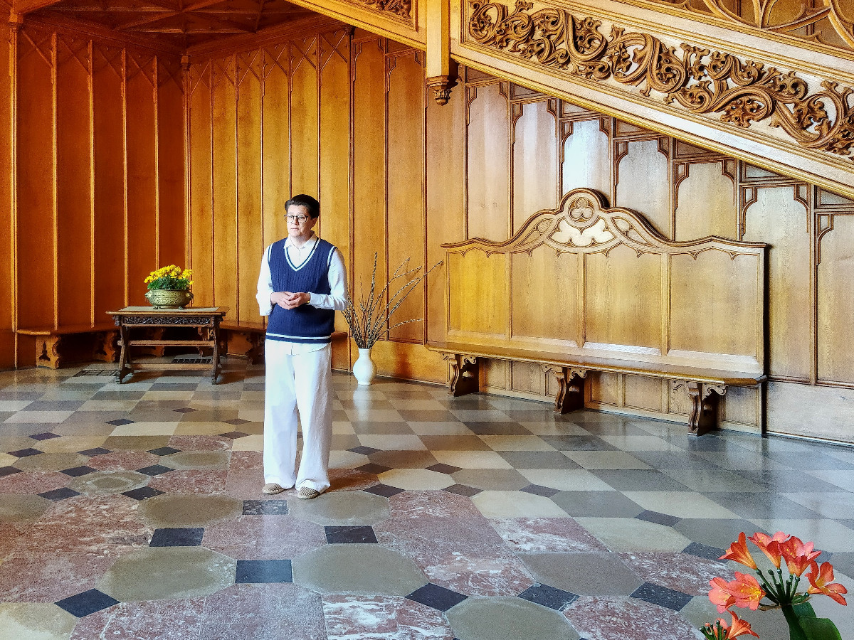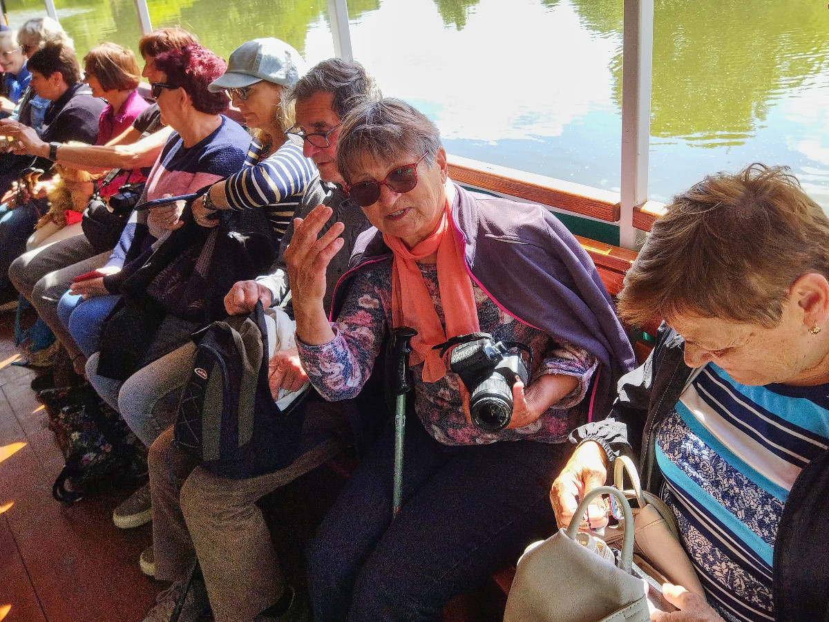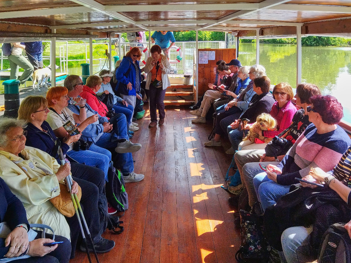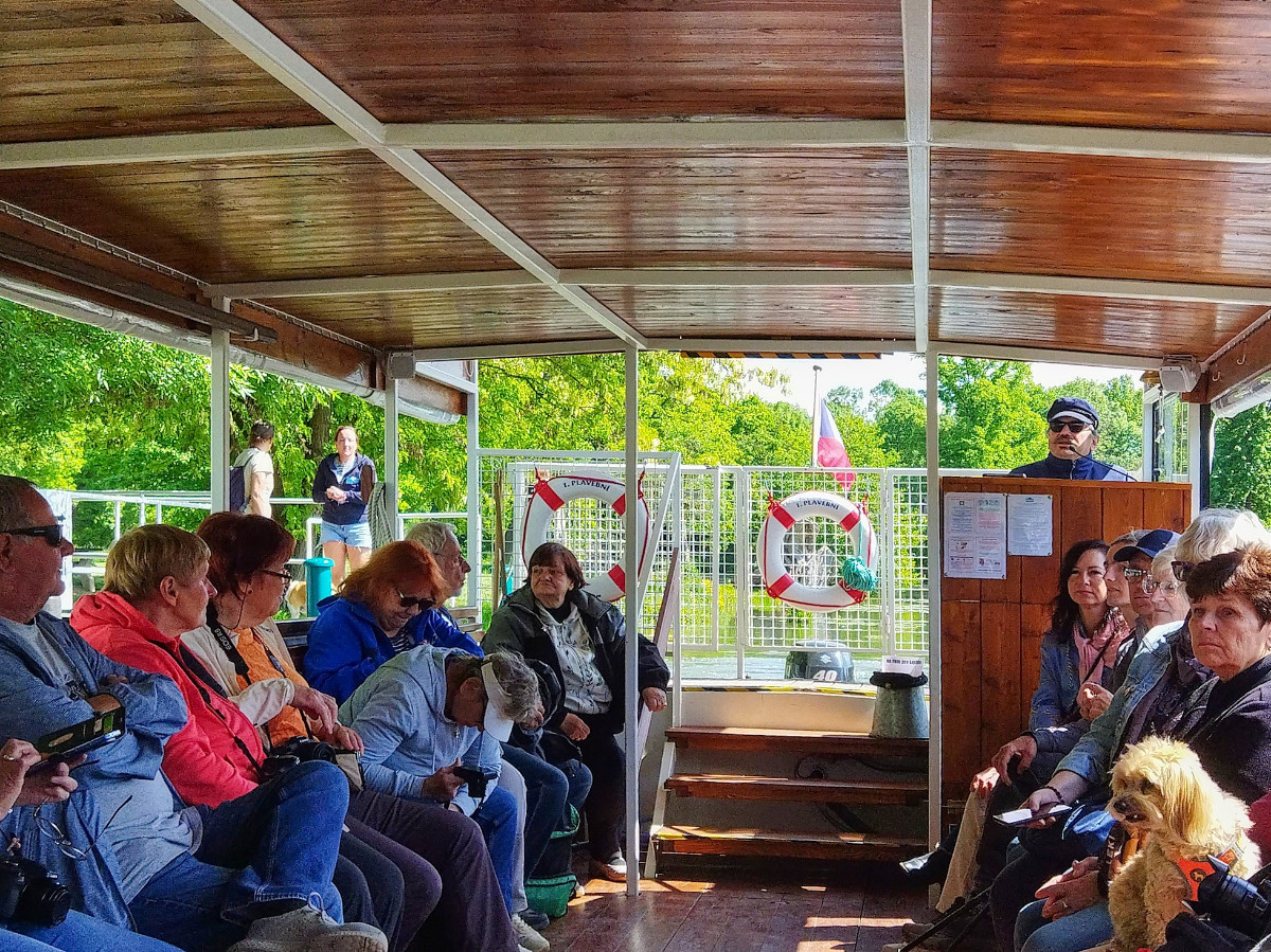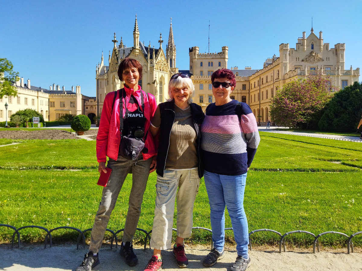 Zakoupila jsem na internetu jízdenky na vlak 14 dní dopředu a sdělila spolucestujícím a zároveň i spolubydlícím íčkařkám Vlaďce a Líbě číslo vagónu a místa, abychom mohly jet společně. Nastal den odjezdu 12. 5., usadila jsem se do vlaku na své místo a ihned poslala zprávu, že jedu správným vlakem. V Pardubicích přistupovala Vlaďka. Vyhlížím z okna, ona nikde. Po chvilce telefon, kde jsem. Pravím, na svém místě. Ona také na svém místě, ale každá někde jinde. Znovu kontroluji jízdenku a ejhle, sedím ve vagónu 23 a mám být ve 24. Nikdo mě v Praze ani v Kolíně nevyhazoval. Vyřešeno, sbalila jsem vše a přesunula do vedlejšího vagónu, kde už mě očekávala vyděšená Vlaďka. Líba přistoupila v České Třebové v pohodě. Cesta velmi rychle utekla a po výstupu v Břeclavi jsme zamířily ke stanici autobusu 570 do Lednice, který odjížděl asi za 20 minut. Vlaďce se povedlo zároveň přes idos koupit i jízdenku na autobus, je šikovnější, nám ne. Jaké překvapení, když jí řidič jízdenku neuznal či neuměl načíst, zaplatila znovu a jelo se do cíle.
