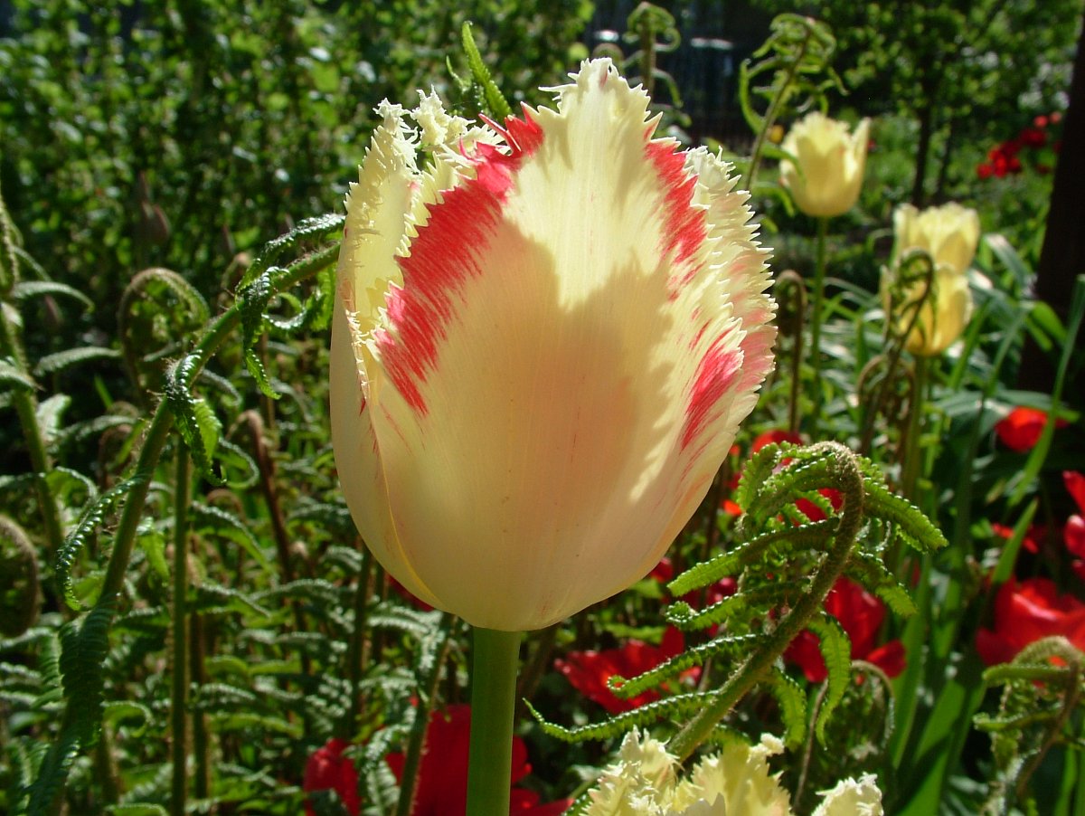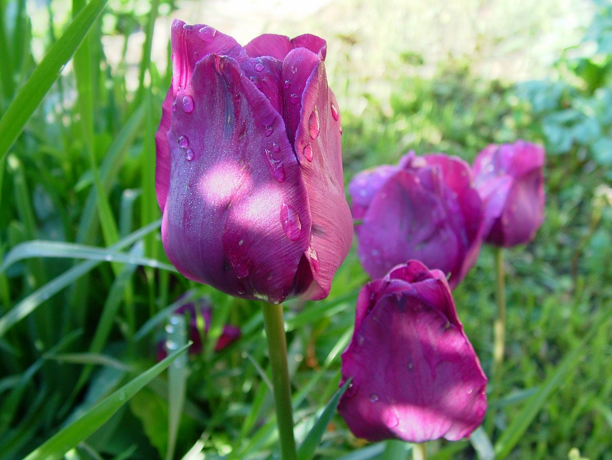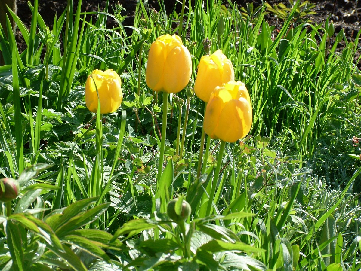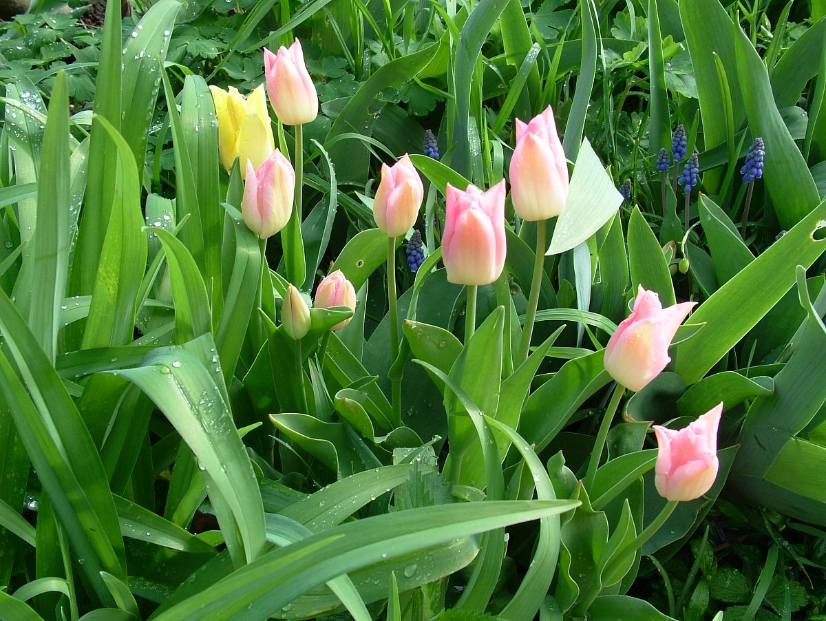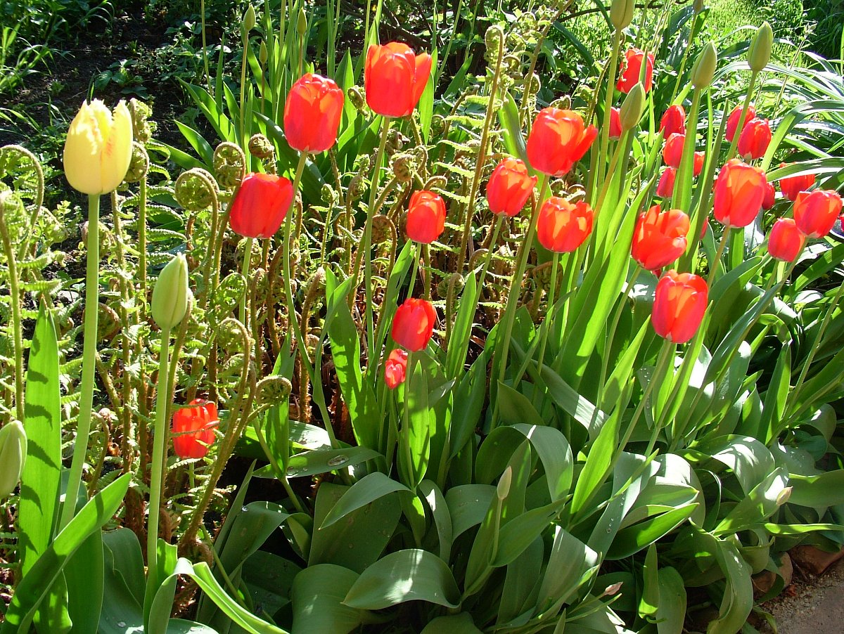 V naší zahrádce začínají kvést v březnu nejdříve nízké a otužilé, červené skalkové, v dubnu se přidávají vysoké fialové, červené, růžové, bílé žíhané, v květnu pokračují další trsy barev žlutých a míchaných. Pokud nenastanou hned letní teploty, kvetou takto tulipány nepřetržitě tři měsíce.