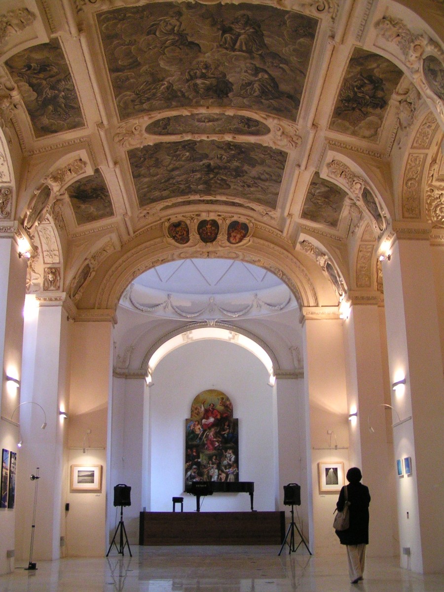 Současné sídlo Institutu představuje rozlehlý komplex někdejšího Vlašského špitálu z konce 16. století, který zahrnuje ambit a bývalou barokní kapli Nanebevzetí Panny Marie a svatého Karla Boromejského s klenbou vyzdobenou freskami od Václava Markovského (https://cs.wikipedia.org/wiki/Vlašský_špitál a https://cs.wikipedia.org/wiki/Kaple_Panny_Marie_a_svatého_Karla_Boromejského_(Vlašský_špitál)). Budova, která patřila Italské kongregaci, sloužila zpočátku jako špitál, později jako sirotčinec, a nakonec v roce 1942, kdy byla předána italskému státu, hostila tzv. Italský dům (Casa d’Italia), který byl poté přeměněn na Italský kulturní institut. Další podrobnosti lze nalézt na odkazech https://iicpraga.esteri.it/cs/chi-siamo/ a https://cs.wikipedia.org/wiki/Italský_kulturní_institut_v_Praze. Za článkem jsou čtyři fotografie nádvoří objektu (ambitu) a vnitřku kaple s detaily stropu.