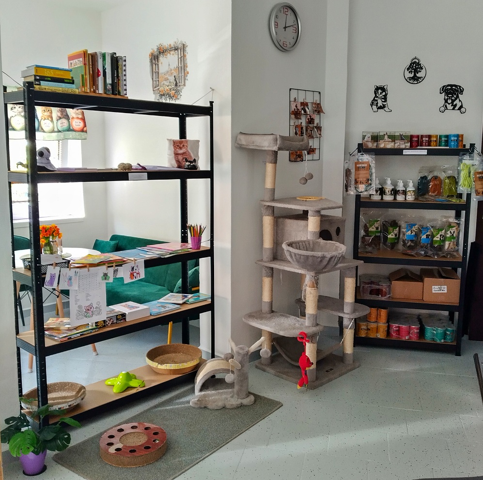 Kromě občerstvení si zákazníci mohou zakoupit různé suvenýry s obrázky místních kočiček, například přívěsky na klíče, ozdobné špendlíky, tašky a další drobnosti. Mají-li doma kočku nebo psa, v kavárně pro ně mohou pořídit něco na zub, případně zakoupit nějakou dobrotu kavárenským kočičkám.