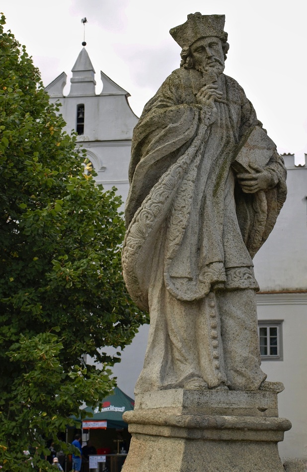 Barokní kamenný most, nazývaný Židovský, z počátku 18. století v minulosti spojoval křesťanskou a židovskou část města. Památkově chráněné dílo je doplněno šesti sochami zhotovenými místním sochařem Davidem Lipartem, jedním z přeživších morové nákazy v roce 1715. Ve farním kostele sv. Jakuba Většího se nachází jeho sousoší Pieta (1718) a socha Anděla Strážce (1715). Mimo Brtnici je jeho nejznámější práce na Mariánském sloupu v Telči (1716 - 1720). Tři sochy na této fotografii představují (zprava) blahoslavenou Juliánu z Collalto, sousoší Piety a sv. Antonína Paduánského. Originály jsou postupně restaurovány, popř. nahrazovány kopiemi, stejně jako sochy na mostě u radnice (v galerii včetně zbývajících tří soch). Tomuto pohledu na zámek s mostem v popředí se říká brtnické Hradčany.