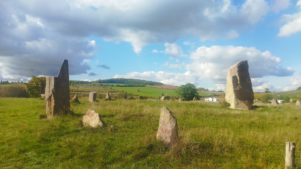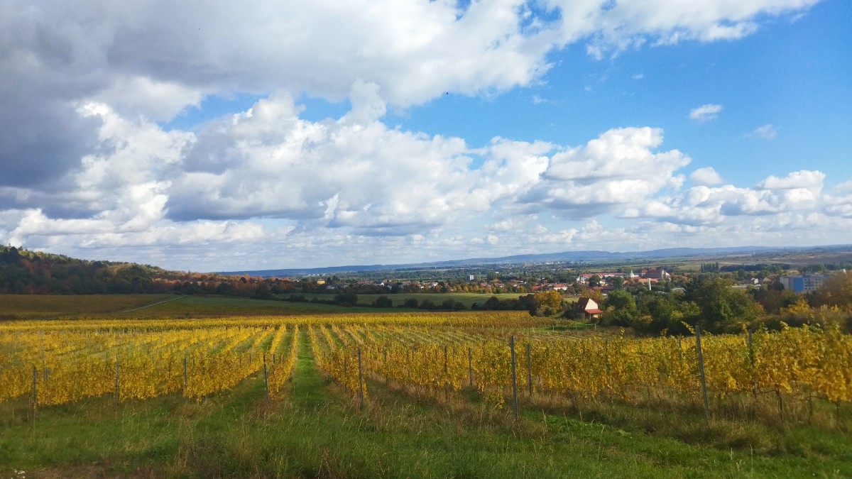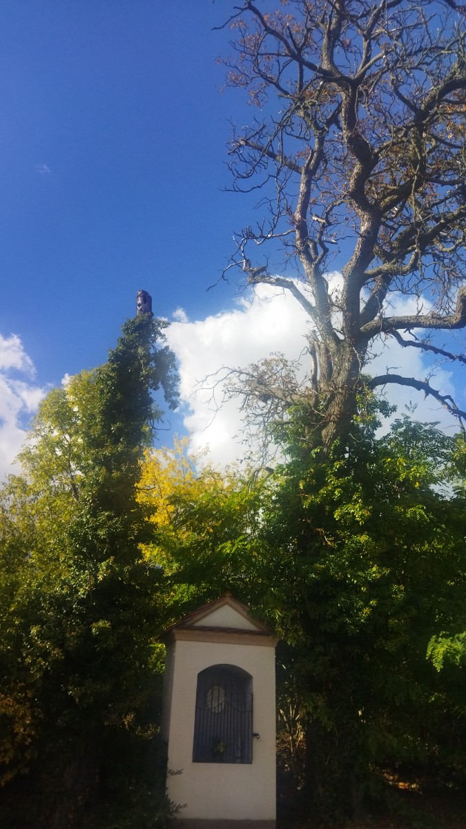 Podzimní toulání k rozjímání. Jak je tohle všechno možné? Proč se nám to tak líbí.  Daleké výhledy, modré nebe s bílými mraky, žloutnoucí vinice. Větve, květy i plody. Barvy. Nic se neopakuje, přesto žádný zmatek, člověk má pocit dokonalého řádu.  Kapličky a kostely v dálce připomínají křesťanskou víru naší krajiny a země. Menhiry jsou tu pro ty, kteří touží uctívat to, co této víře předcházelo.