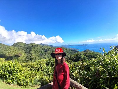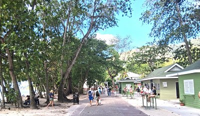 Z restaurace je výhled nejen na Victorii, ale vidíme i oba další větší ostrovy - Praslin a La Digue, kam se ve stejný den odebral Roddy v rámci "pánské jízdy" s patnácti kamarády. Údajně se jednalo o cyklistický výlet, ale Roddy se přiznal, že ujede maximálně jeden kilometr. Mimochodem, na ostrově La Digue je počet aut velmi omezený. Hlavním dopravním prostředkem jsou tam jízdní kola. Dříve se používaly i povozy tažené voly, dnes spíše jako turistická atrakce. Několik automobilů (pro zásobování nebo taxi služby) na ostrově existuje, ale běžná automobilová doprava tam není.