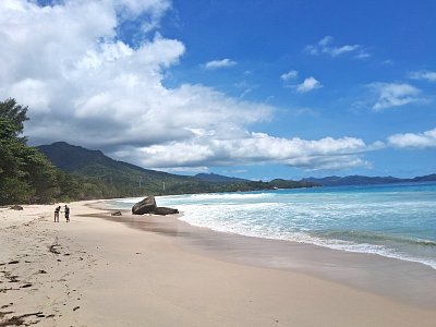Severozápad Mahé vyniká vrcholky národního parku Morne Seychellois, bujnou tropickou vegetací a skvělými plážemi. Grand Anse byla první z nich. Procházka po téměř prázdné písčité pláži byla doprovázena hukotem moře, jehož vlny se tříštily o žulové balvany typické pro Seychely.