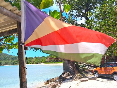 Vlajka Seychel je stejně pestrá a barevná jako jejich příroda.