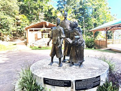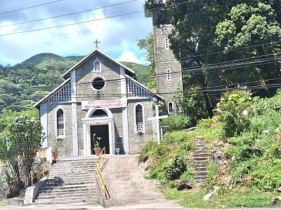 Silnice se kroutí v hustém tropickém lese, bujná zelená vegetace v několika patrech, vysoké stromy šplhající za sluncem. Jsme okouzleni tímto přírodním divadlem, manžel se však musí soustředit na řízení, zvláště když se proti nám řítí místní řidiči nebo dokonce autobus. Náhle se po levé straně objevuje malé parkoviště. Tabule hlásí "The Station". Jedná se o malý hotel s restaurací. Místo vypadá útulně, takže jdeme dovnitř. Zajímavé kreolské palačinky, kterých se však musím vzdát, protože mám intoleranci na laktózu. Zkusíme tedy kuře v šafránové omáčce, jež obsahuje různé koření pěstované na ostrově - skořice, hřebíček, muškátový oříšek a samozřejmě šafrán.