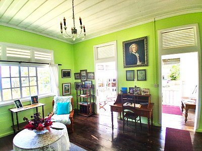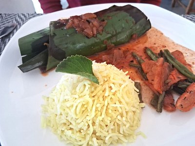 V místní restauraci jsou kreolská jídla připravována z čerstvě sklizených ingrediencí a koření. Neodolali jsme. Jedno z nejlepších jídel na této cestě, chlebovník ve vanilkové omáčce už asi nikde jinde neochutnáme.