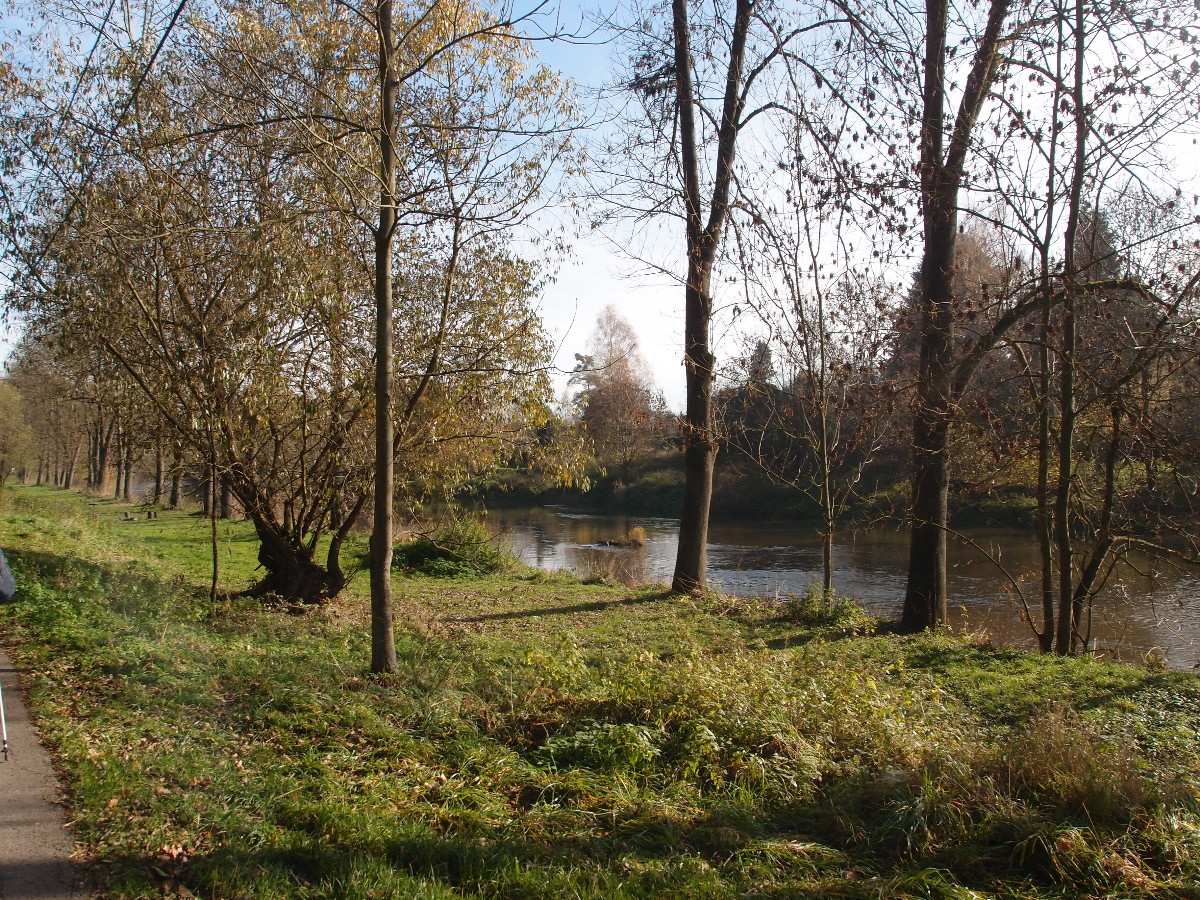 Řeka se znovu objevovala po pravé straně a na pastvinách se líně pásly krávy. Poslední lístky vrb se třepotaly ve větru. Před Nespekami jsme došli k místu, kde se do Sázavy vlévá potok. Voda se tam zrcadlila, třpytila a házela „prasátka“ do očí. Počasí i nálada byla prostě skvělá.