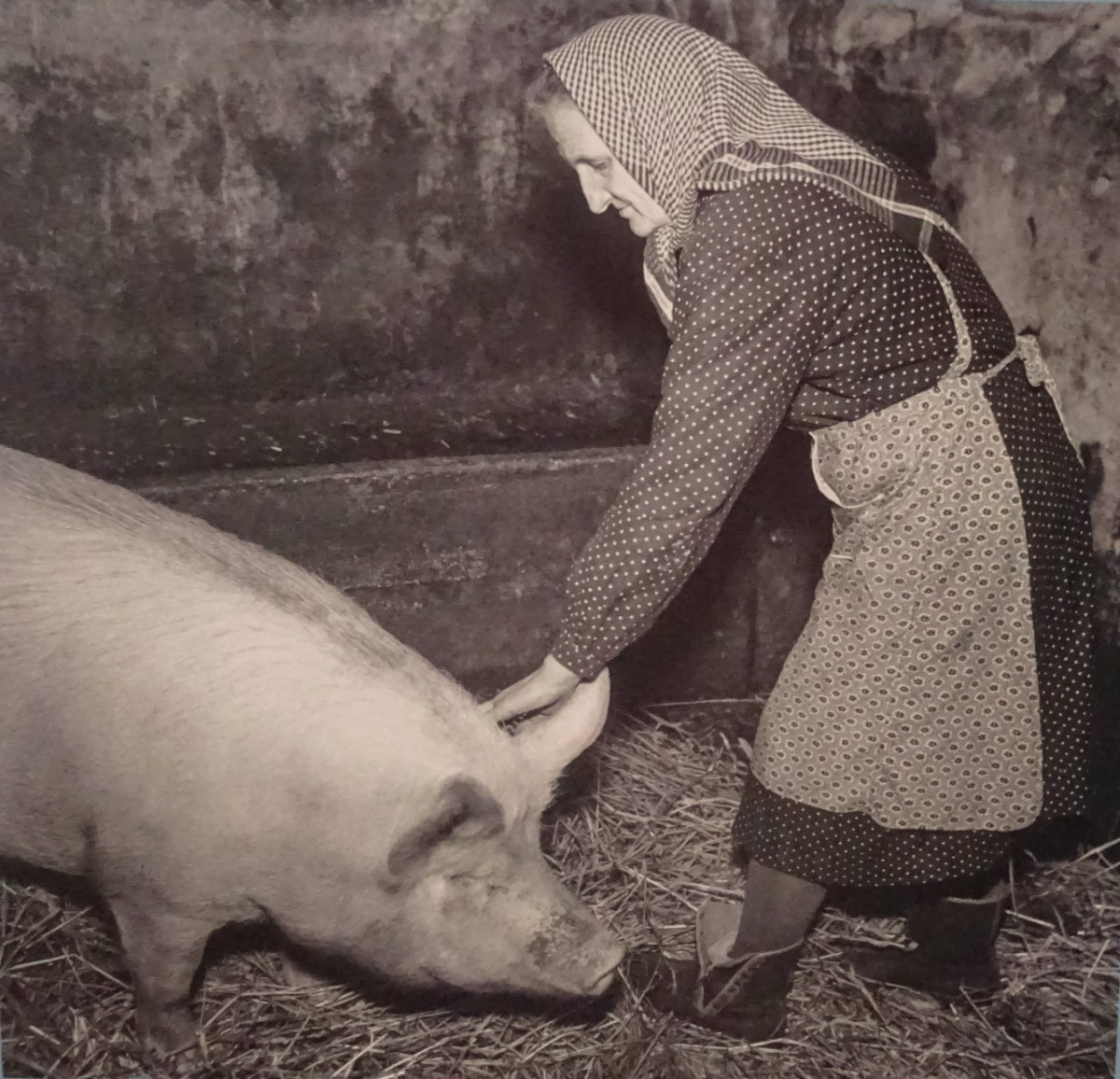 Žena s vepřem, Valašsko, 1948