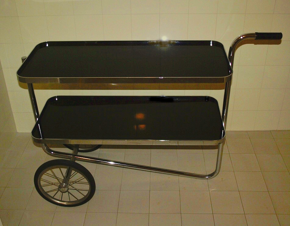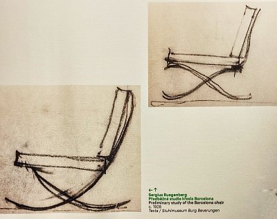Předběžná studie křesla Barcelona (1928). Mies použil místo dřeva chromovanou ocel. Ohnuté pásy vytvářely elegantní křivku. Výroba byla technicky velice náročná. Ocelový rám se ručně svařoval a brousil, polštáře byly z kůže a koňských žíní.