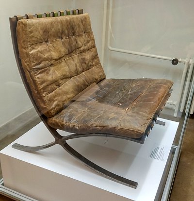 Výstava přibližuje příběh tohoto křesla od počátečních prototypů až k současné masové produkci. Poprvé také detailně ukazuje, jak byly vyrobeny autentické kopie umístěné ve vile Tugendhat jako součást sezení u onyxové stěny v obytném prostoru druhého podlaží. Zleva licencovaná výroba křesla podle originálního návrhu (1953), upravený design (2006); replika podle originální projektové dokumentace (2012) a kostra křesla - ukázka konstrukčního řešení rámu z ohýbané pásové oceli (replika, 2012). Exponát vpravo níže na samostatné fotografii.