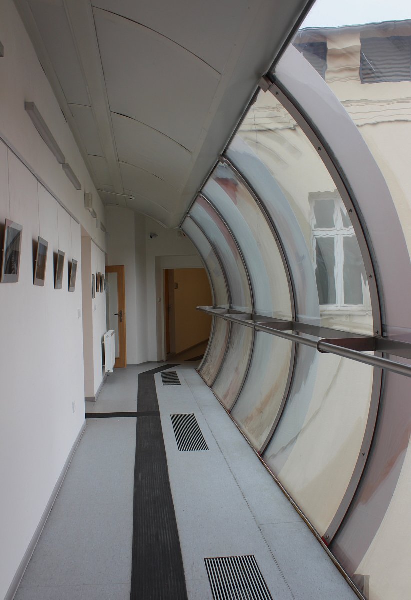 Potom jsme se dopravily tramvají k místu konání výstavy, hned vedle renesanční Katedrály Božského spasitele. Prostory výstavy byly velmi zajímavé. Fotografie byly umístěny v úzké, dlouhé a po jedné straně prosklené, chodbě. Skla byla zaoblená, takže se mi ještě víc točila moje hlava. Prostory za skleněnou stěnou se navíc odrážely na zasklených fotografiích Elišky. Nicméně, fotografiím to nic neubralo na jejich kráse a poezii. Elištiny fotografie jsou minimalistické, romantické a plné poetiky. Tak jsem to viděla já.