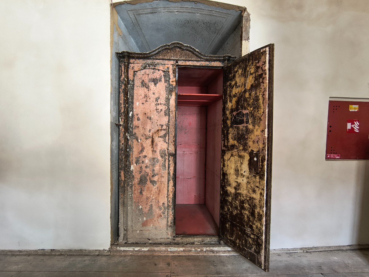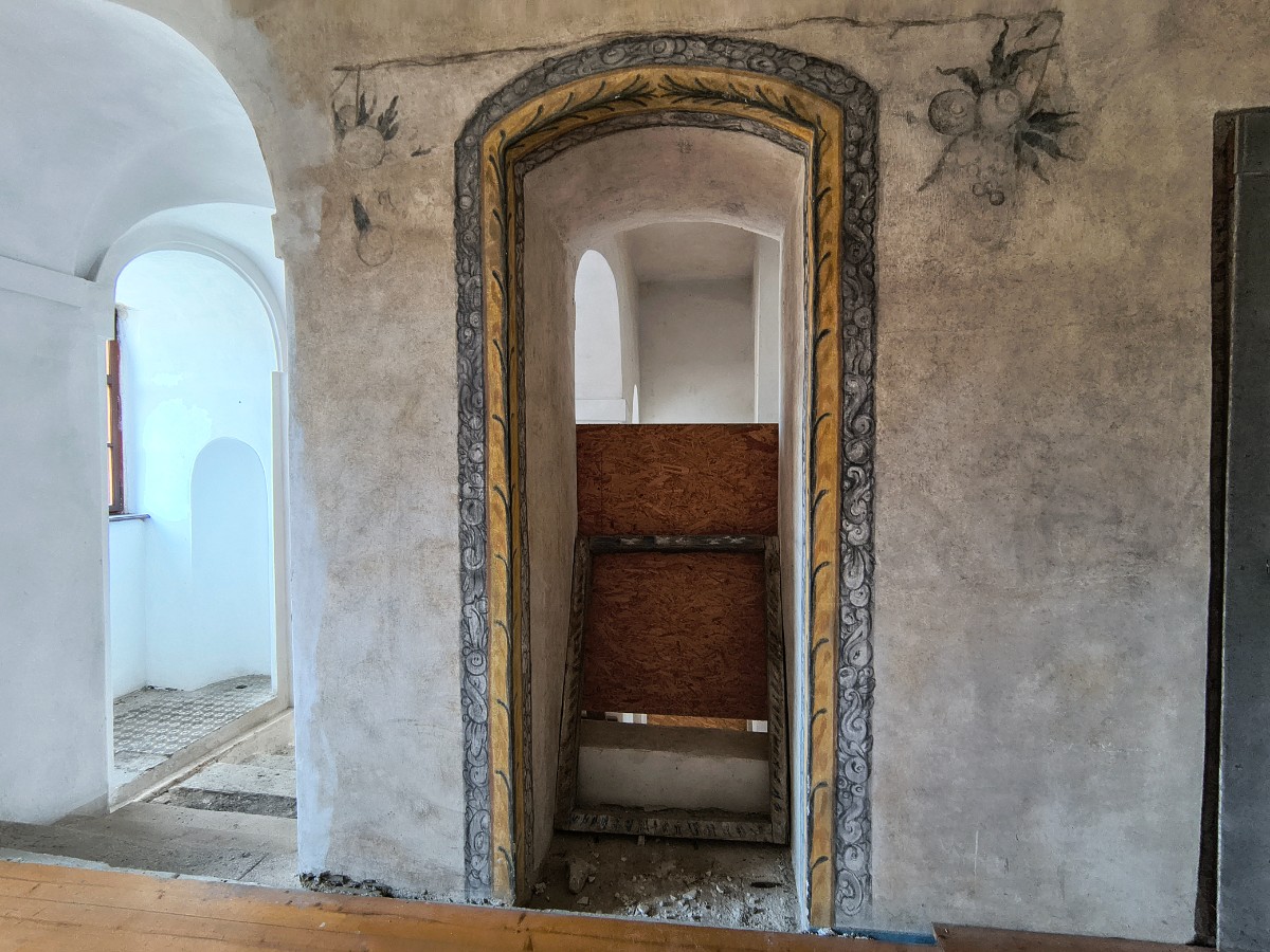 O rok později vznikla další zajímavá audiovizuální expozice. A sice expozice zachráněných gotických fresek ze zaniklého doupovského hřbitovního kostela sv. Wolfganga ve Vojenském újezdu Hradiště, který byl srovnán se zemí. Já osobně si vůbec neumím představit, jak restaurátoři v letech 1966-68 dokázali sejmout gotické fresky a zachránit je tak před dokonalou zkázou. V roce 2021 došlo k jejich umístění do Hubertova ve valečském zámku a dnes si je tam můžete prohlédnout, opět za doprovodu různých barevných osvětlení a zvuků, která si můžete ovladačem sami navolit.