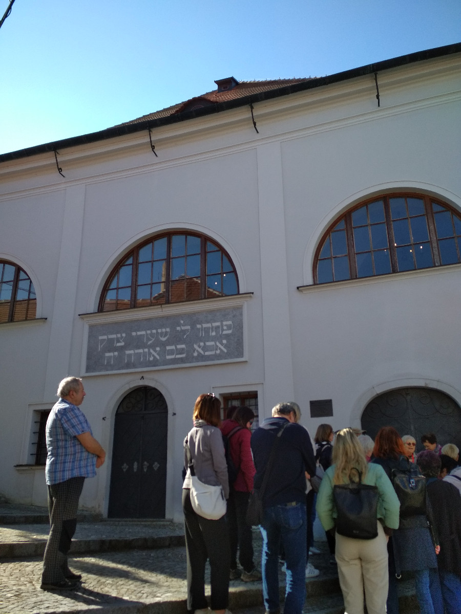 Naším prvním cílem měla být už dříve opravená synagoga. Má barokní podobu a vznikla kolem roku 1720. Jenže právě v tyto dny probíhaly v celém historickém městě kulturní akce. Ano, byly zde třídenní oslavy "Dnů židovské kultury".