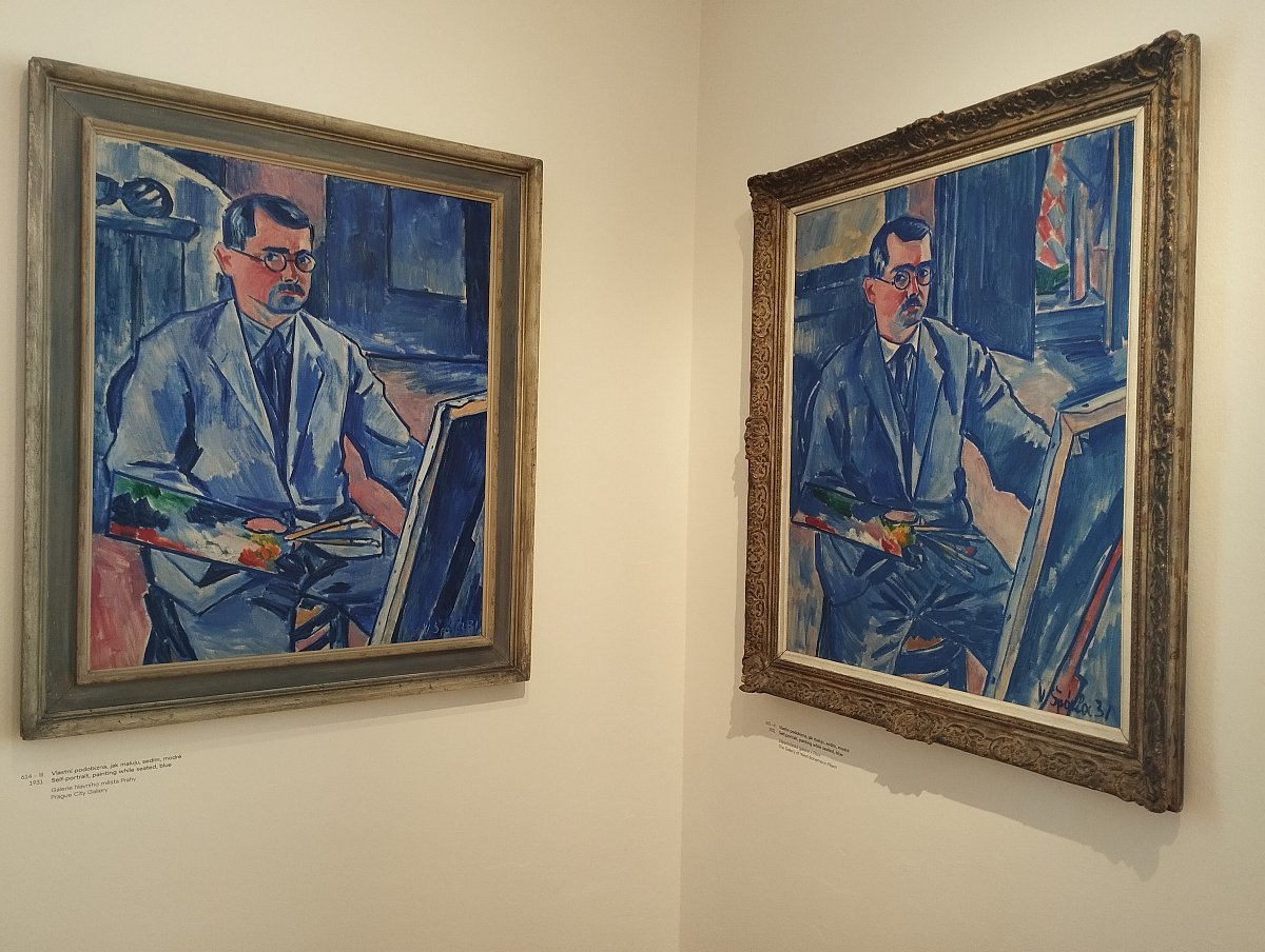 Na výstavě najdeme i malířův autoportrét, a to dvakrát. O jeden tento obraz projevilo zájem hlavní město Praha hned po vystavení v Mánesu roku 1931, takže se pustil do autoportrétu ještě jednou, pro své děti. Autoportréty jsou jen málo odlišné, byly namalovány brzy po sobě.