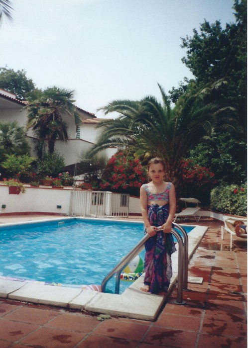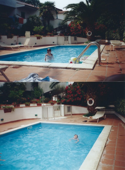 Po týdnu za náma přijela ještě jedna známá s neteří, nebydleli s náma, ale v apartmánu kousek od nás a měli tam bazén. Nebyl hluboký a tam se Terezka naučila plavat a skákat do vody k moři jsem ji už nedostala, i když už bylo klidnější.