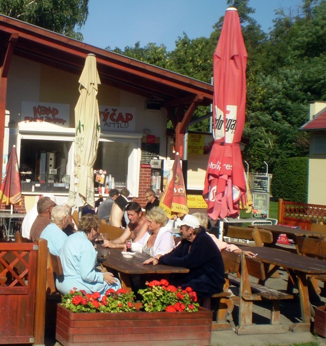 V okolí je řada historických památek. Pevnost v Komárně, historické jádro maďarského města Győr, slovenská kulturní památka – plovoucí mlýn na Malém Dunaji nebo zastřešený dřevěný most u Kolárova. V Mederu je možné zdarma navštívit opravenou starou stavbu s rákosovými došky – nazvanou Vlastivědný dom, kde je vidět tradiční vybavení domácnosti v minulém století. Hned v ulici naproti najdete restauraci „Fantázia“, kde si můžete zaplatit jedno jídlo za 8 euro a druhé jídlo máte jakoby zdarma. To jsou v přepočtu dvě výborná jídla za 200 Kč. Pochutnali jsme si na lahodných  slovenských haluškách se slaninou a smetanou, které byly přidány jako jídlo zdarma k hlavnímu chodu. Ke článku jsem přidal řadu fotografií, protože jeden obrázek poví více než tisíc slov, jak říká staré čínské přísloví. Věřím, že někteří z vás tyto lázně znají a jiní je třeba ještě navštíví. Můžete tam zakusit i řadu zajímavých zážitků jako zákusky.